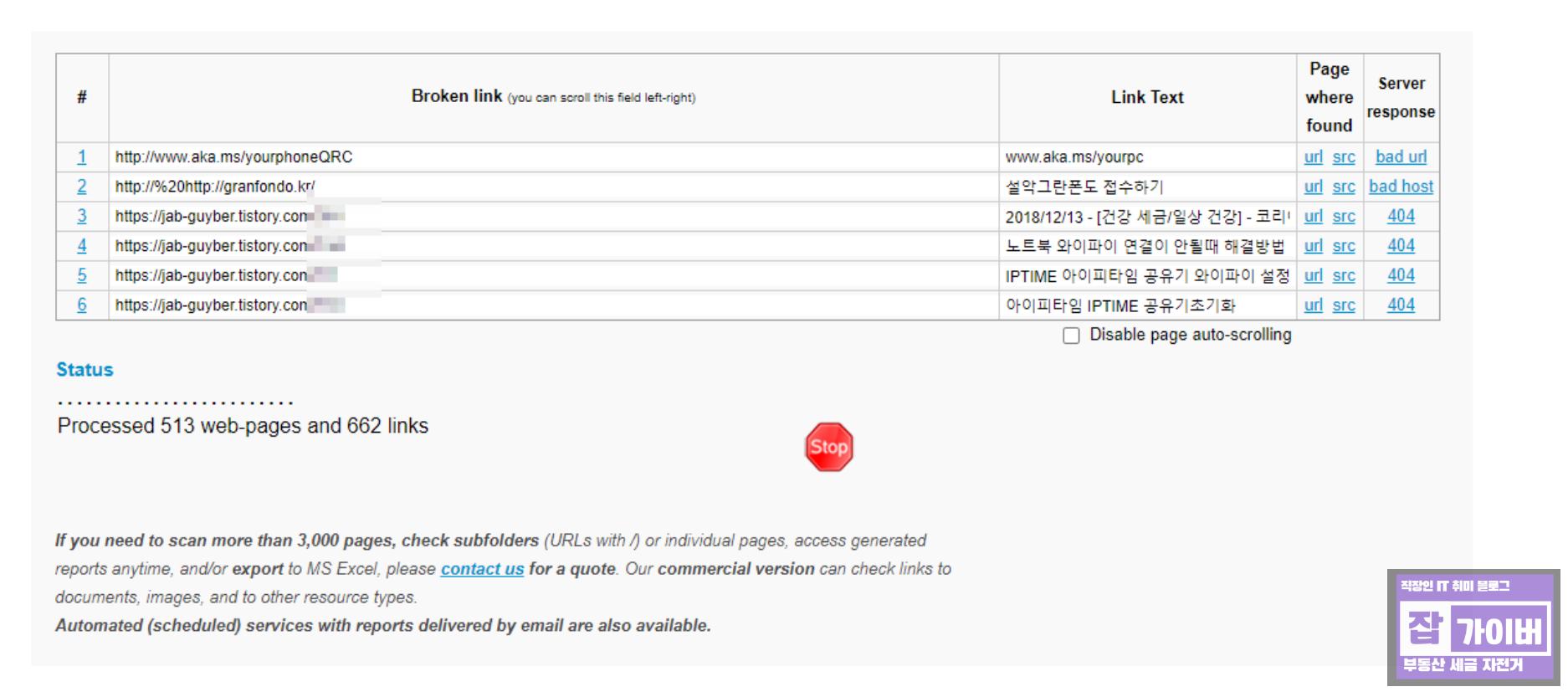 그리고 저 같은 경우 워드프레스에서는 깨진링크를 확인하고 수정하는 편리한 플러그인이 있는데 티스토리 블로그의 경우 그런 기능을 제공하지 않기 때문에 별도의 링크깨짐 확인 웹사이트를 사용해서 확인해야하는 번거로움이 있지만 꾸준히 해준다면 SEO "인터넛검색엔진최적화"에 도움이 됩니다.
