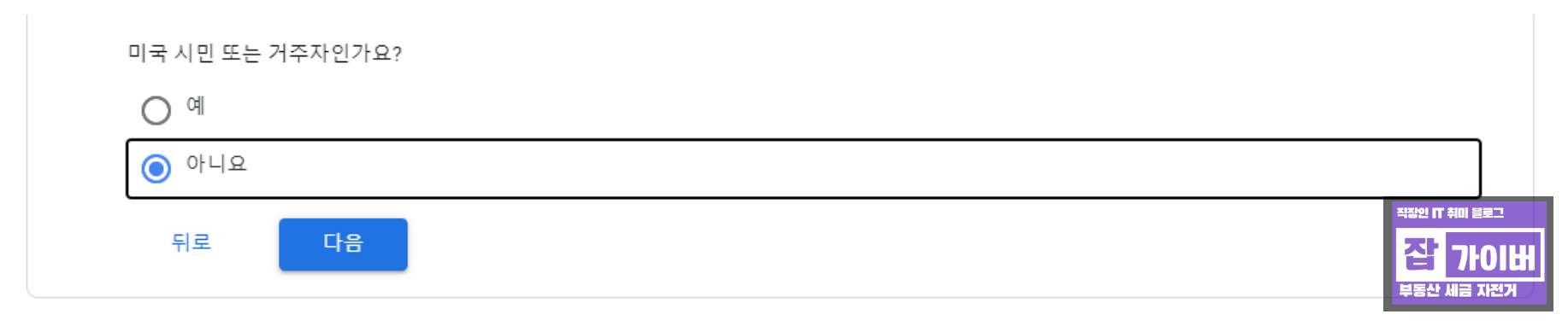 2. 미국 시민 또는 거주자 여부를 선택하고, W-8 세금 양식을 선택합니다.