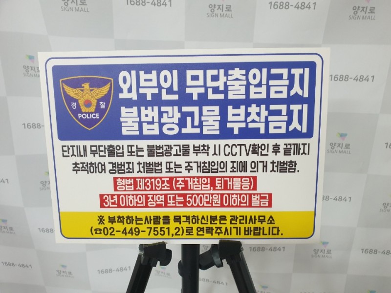 외부인 무단출입금지 및 불법광고물 부착금지 - 형법 제 319조 주거침입 및 퇴거불응