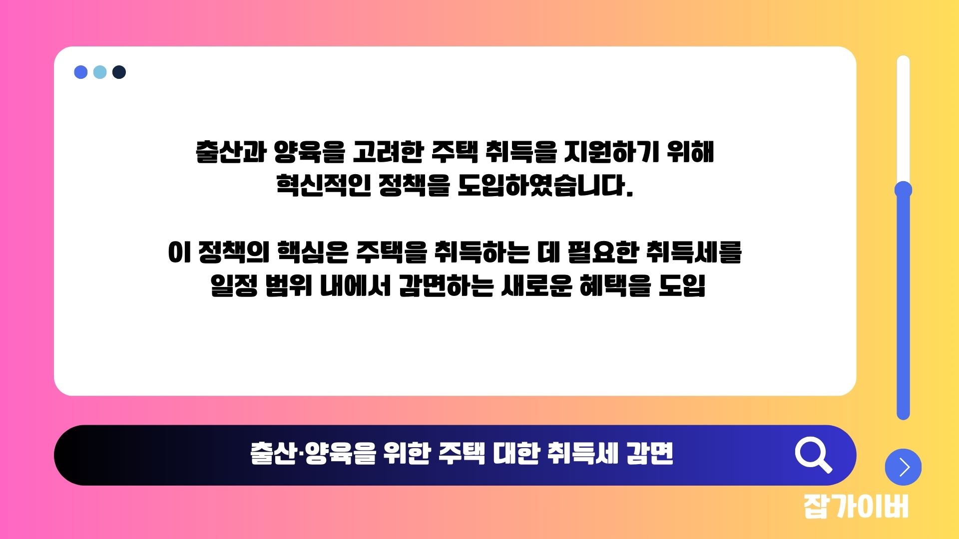 2024년, 정부는 출산과 양육을 고려한 주택 취득을 지원하기 위해 혁신적인 정책을 도입되었으며 이 정책의 핵심은 주택을 취득하는 데 필요한 취득세를 일정 범위 내에서 감면하는 새로운 혜택을 도입하는 것입니다.