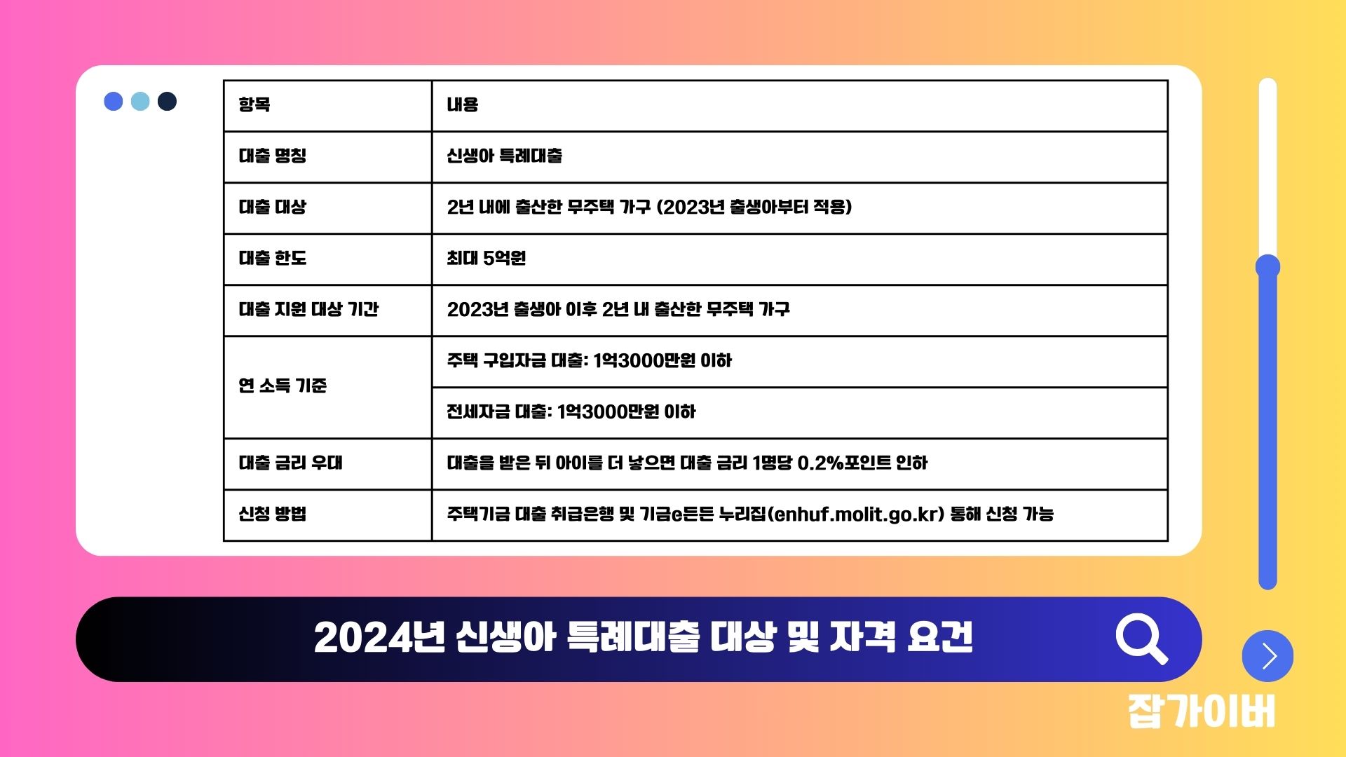 신생아 특례대출 대상 및 자격 요건