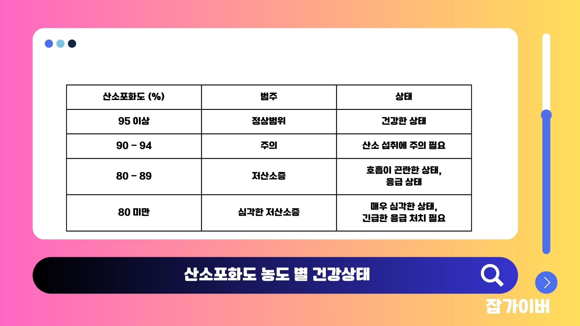 | 80 미만 | 심각한 저산소증 | 매우 심각한 상태, 긴급한 응급 처치 필요 |