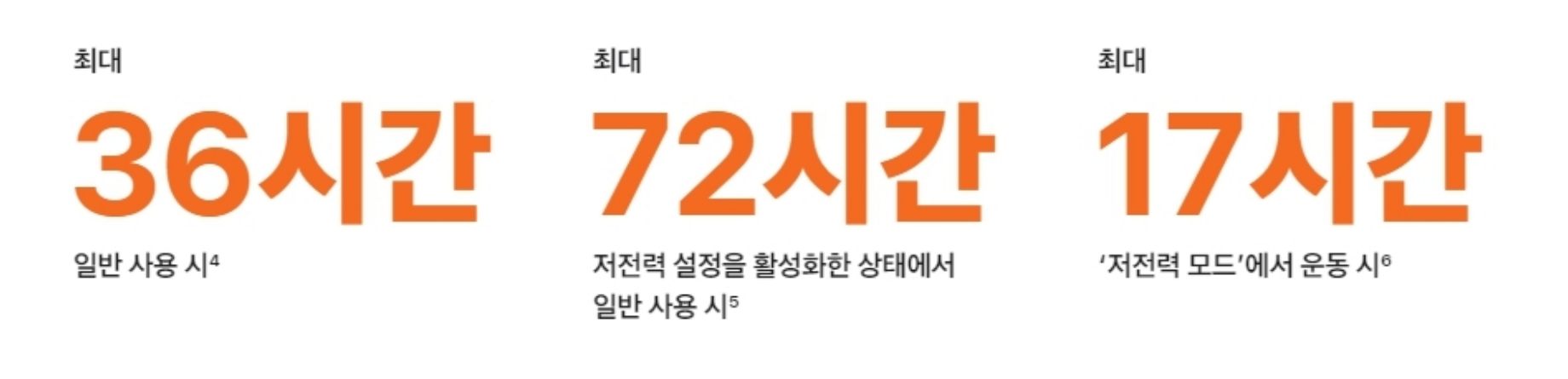 - 배터리 수명이 36시간으로 증가하였으며, 저전력 모드에서는 2배 이상 늘어납니다.