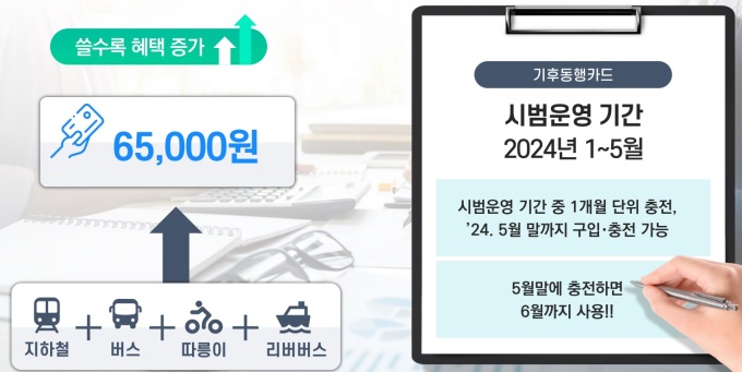기후동행카드 - 서울시 버스 지하철 따릉이 무제한 교통카드 서울시에서 제공하는 기후동행카드는 월 6만 5천 원으로 서울 지하철, 시내버스, 마을버스, 따릉이 등 모든 대중교통을 무제한으로
