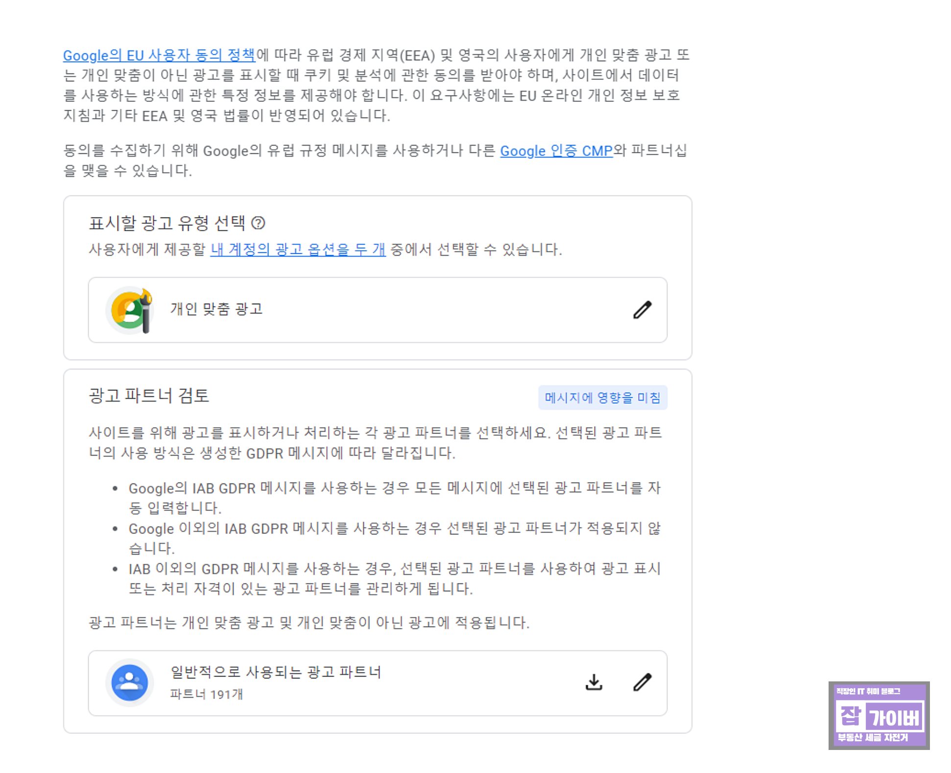 애드센스 GDPR 유럽규정 수익창출 중단 페이지 설정방법