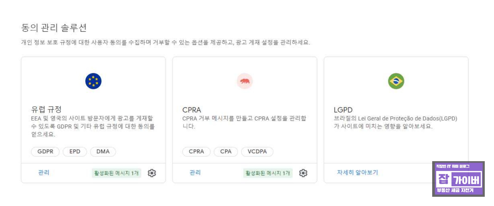 애드센스 GDPR 유럽규정 수익창출 중단 페이지 설정방법