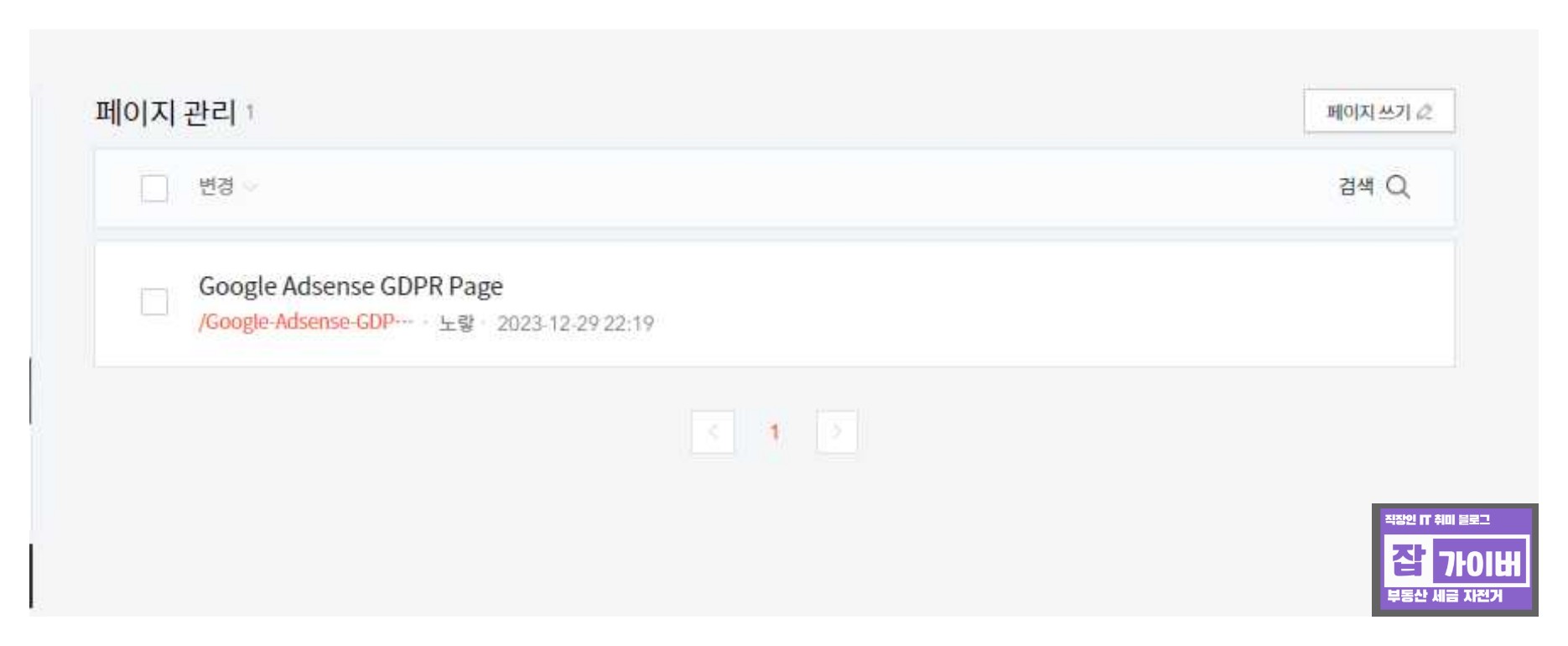 이렇게 생성된 페이지를 구글 애드센스의 유럽규정에 추가합니다.