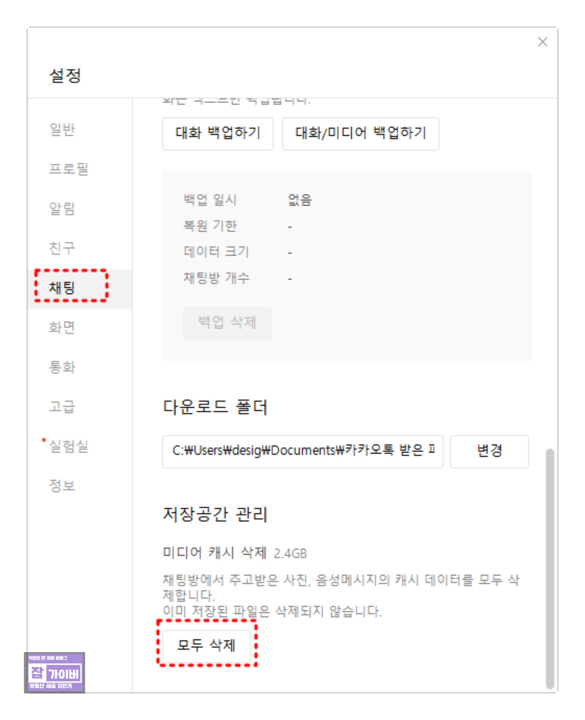 카카오톡 대화내용 캐시 삭제 용량 줄이는 방법