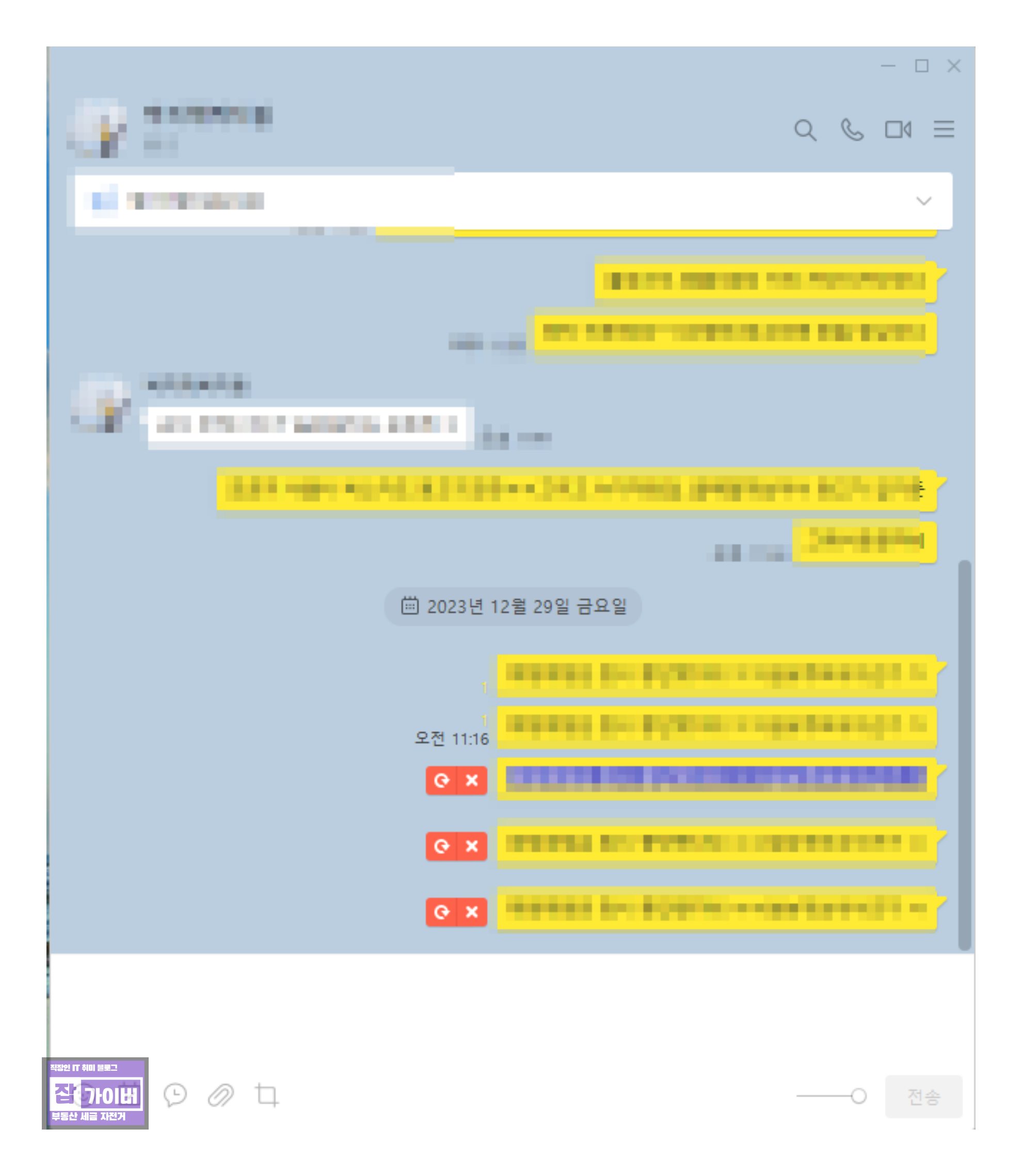 | 특정 채팅방에서만 느리고 실패 | 대화방 데이터 누적, 첨부파일 과다 | 채팅방 정리/저장공간 정리, 앱 캐시 정리 |