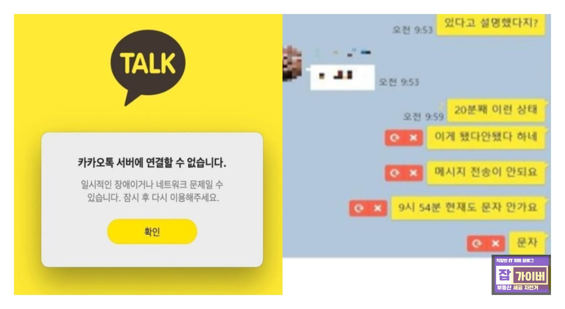 카카오톡 메시지 전송실패 - 카톡 대화오류 연말이라 그런지 갑자기 카카오톡 메시지를 보내는데 전송 실패가 계속 발생하여 카톡 대화가 원활하게 이뤄지지 않고 있습니다. 이러한 문제는 일