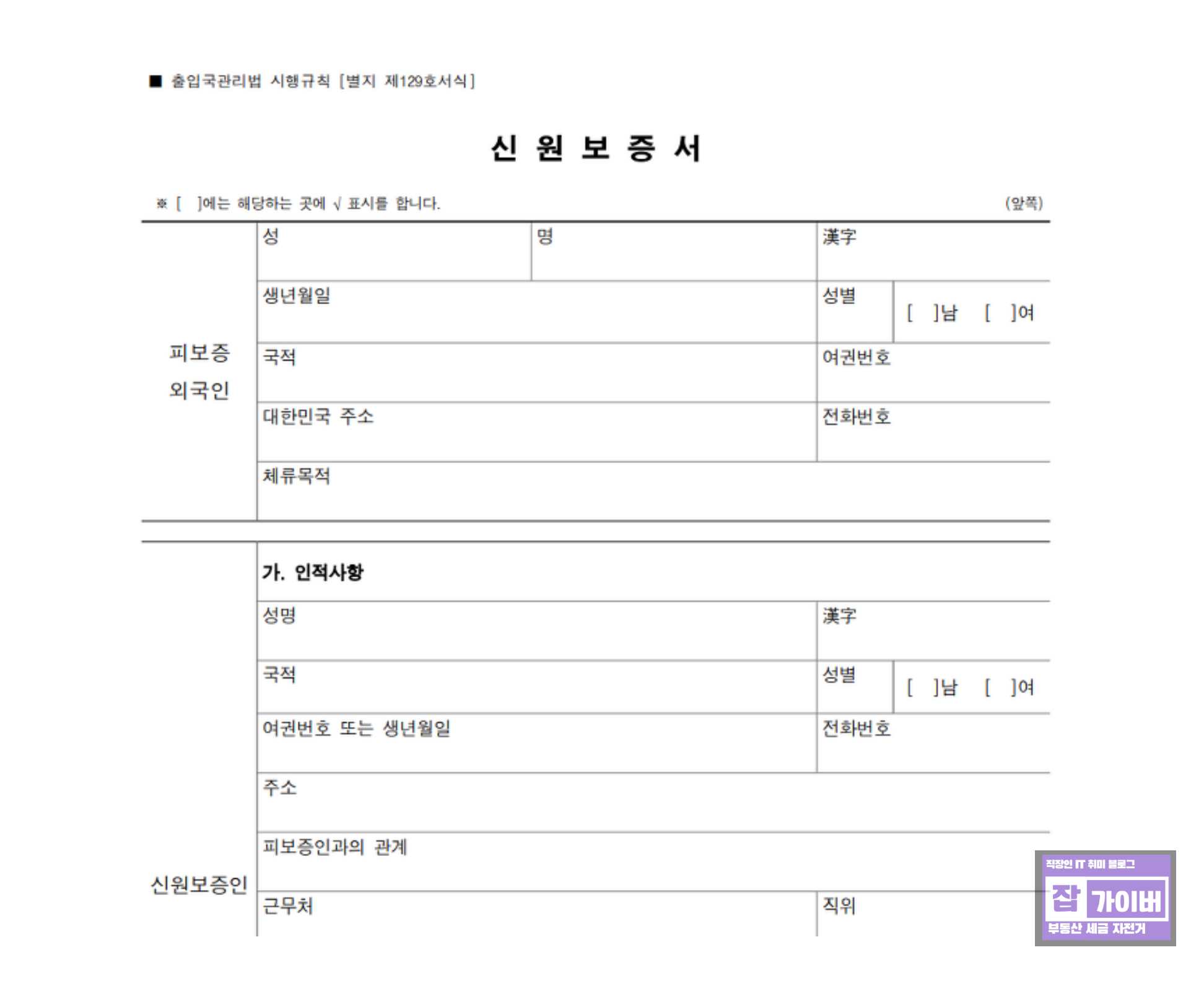 참고 : [건강 세금/직장인 세금] - 회사 신입 입사 전 신원보증서 vs 신원보증보험 작성 및 양식