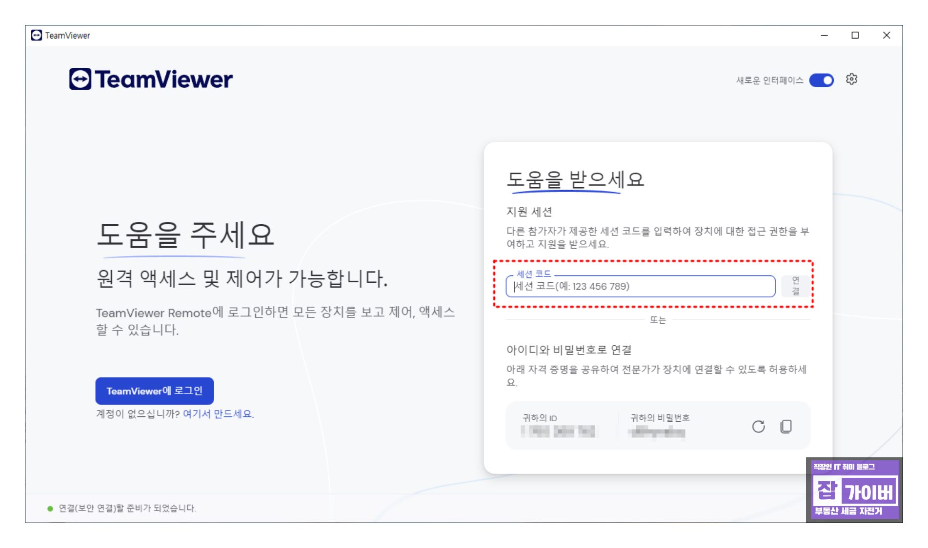 예를 들어, 나이 든 가족 구성원이 은행 계정에 로그인하는 데 어려움을 겪을 경우, 팀뷰어를 다운로드하고 실행하여 해당 문제를 해결할 수 있습니다. 다운로드 및 설치 후 제공된 ID와 비밀번호를 통해 로그인하여 필요한 지원을 제공할 수 있습니다.