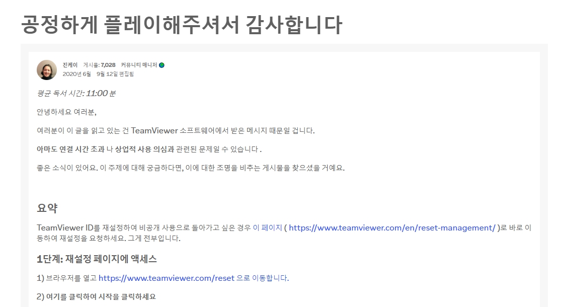 1. 팀뷰어 리셋 센터에 문의하기