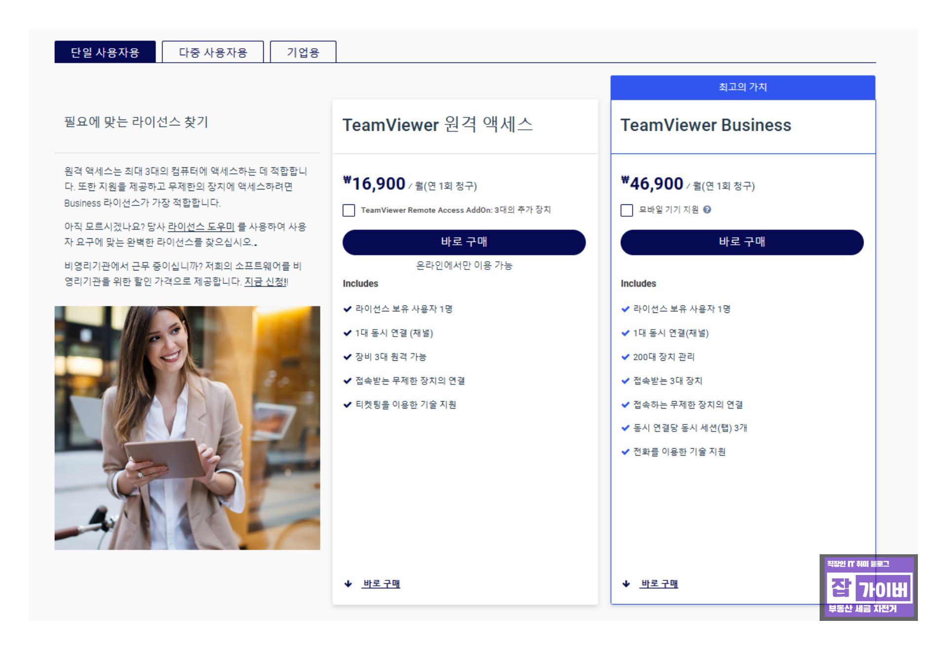 컴퓨터 원격 프로그램 팀뷰어 라이센스 가격 및 종류 - 노랗IT월드