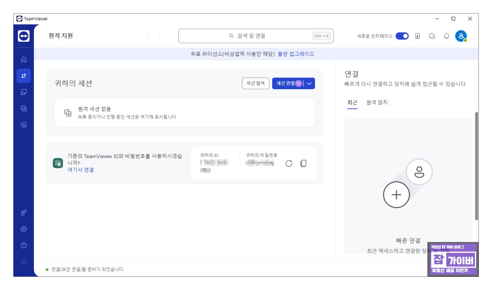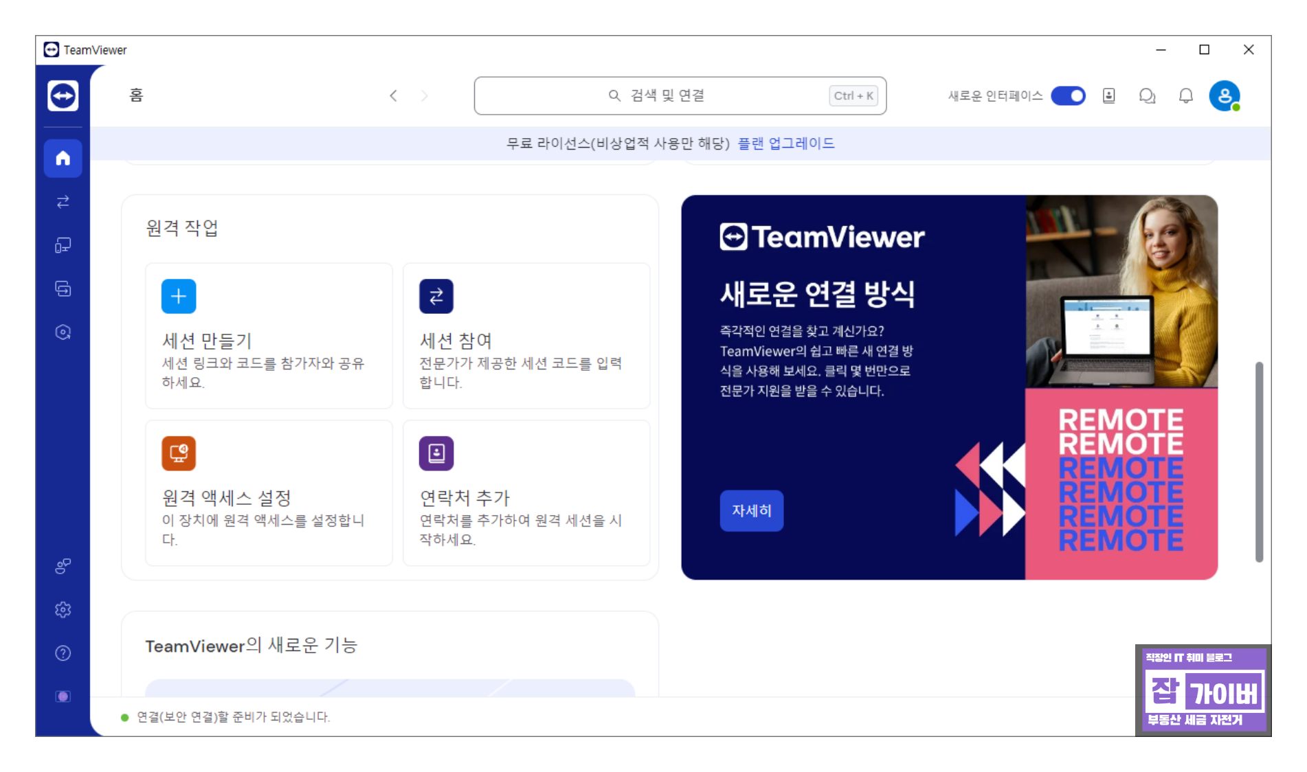 팀뷰어 프로그램을 자주 사용하면 유료 버전을 제안하는 대화상자가 나타날 수 있으나, 개인적인 용도나 간헐적인 사용 시에는 무료로 간편하게 활용할 수 있습니다.