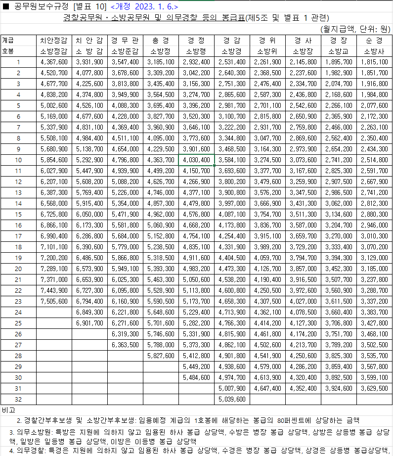 호봉 순경봉급 경장 봉급 경사 봉급 경위 봉급 경감 봉급 경정 봉급 청경 봉급 경무관 봉급 치안감 봉급 치안정감 봉급