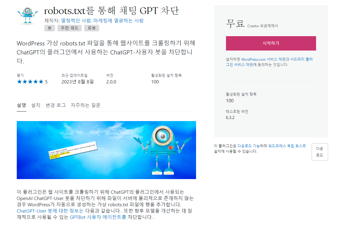 Block Chat GPT via robots.txt 플러그인 — WordPress.com