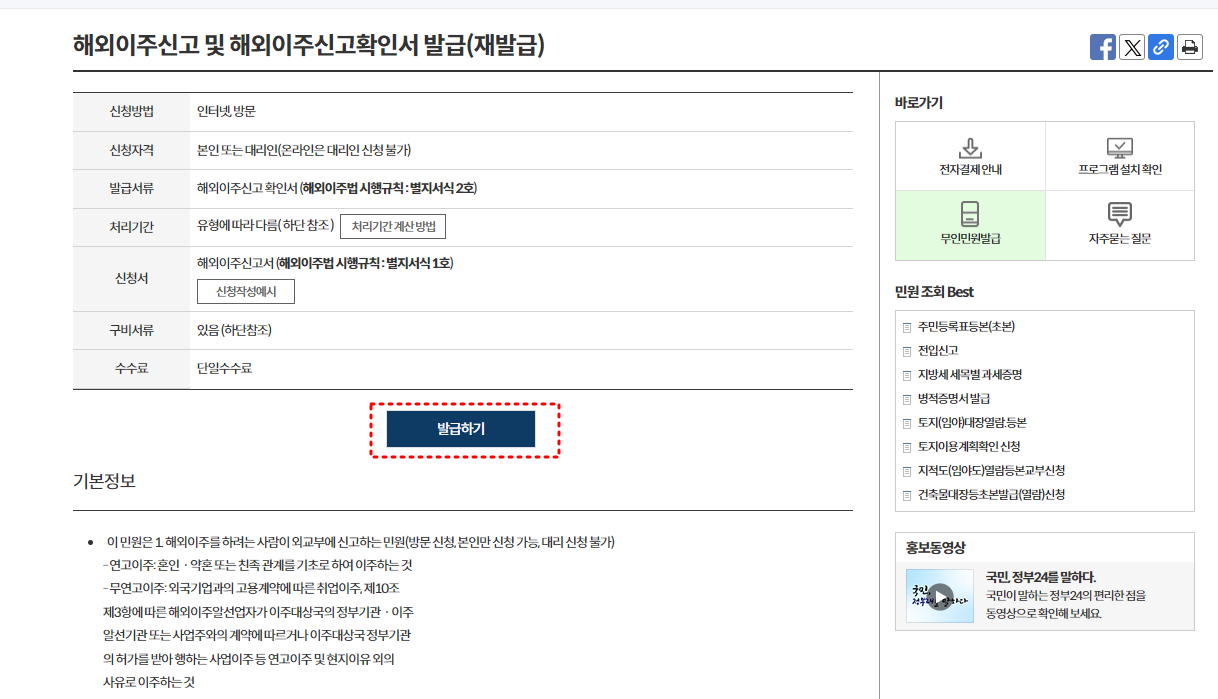 해외이주신고 및 해외이주신고확인서 발급 및 재발급