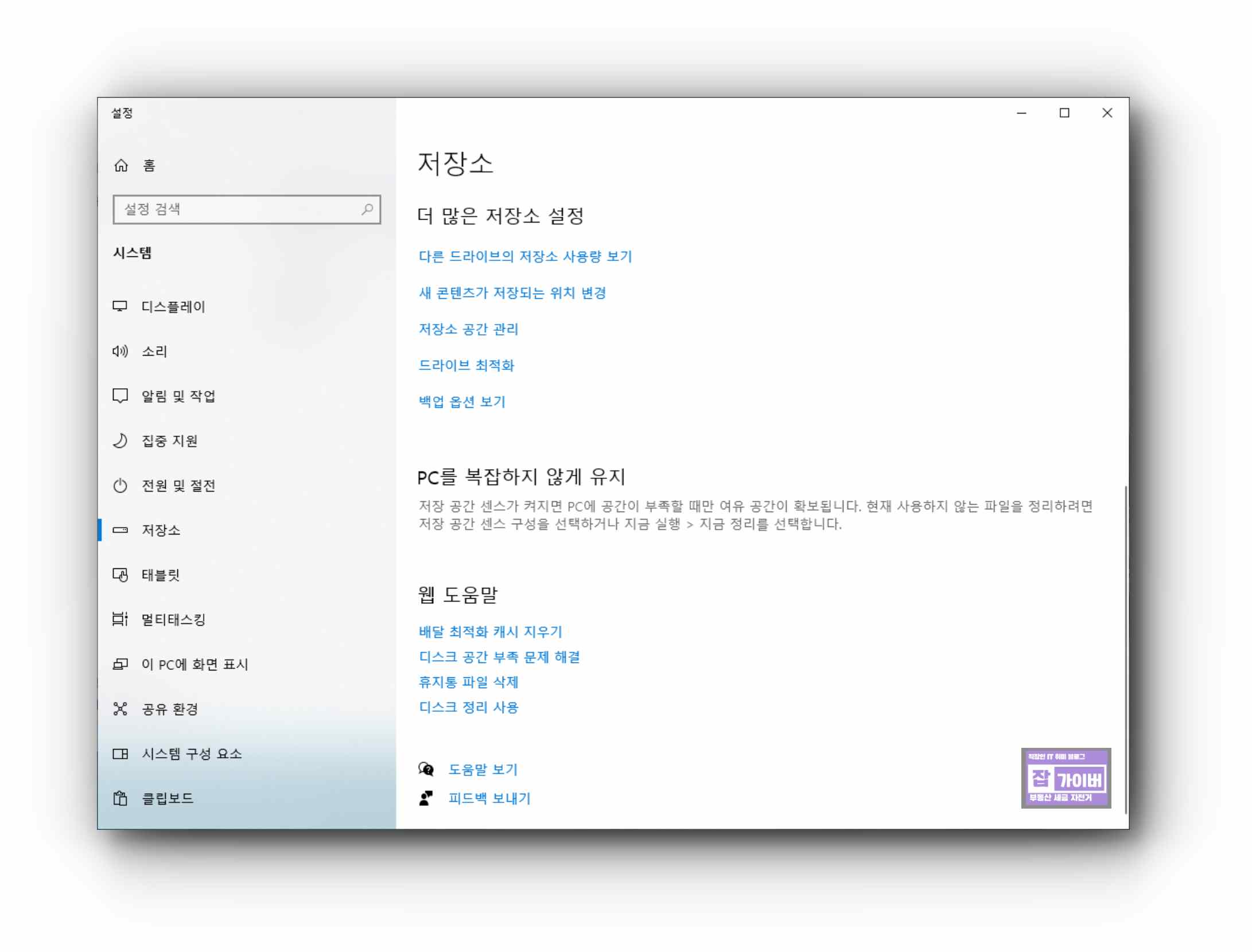 추가로 저장소 센스를 활용하여 C드라이브의 휴지통 및 임시파일, OneDrive 등의 용량을 확인하고 최적화하여 용량을 늘려주느것도 좋습니다.