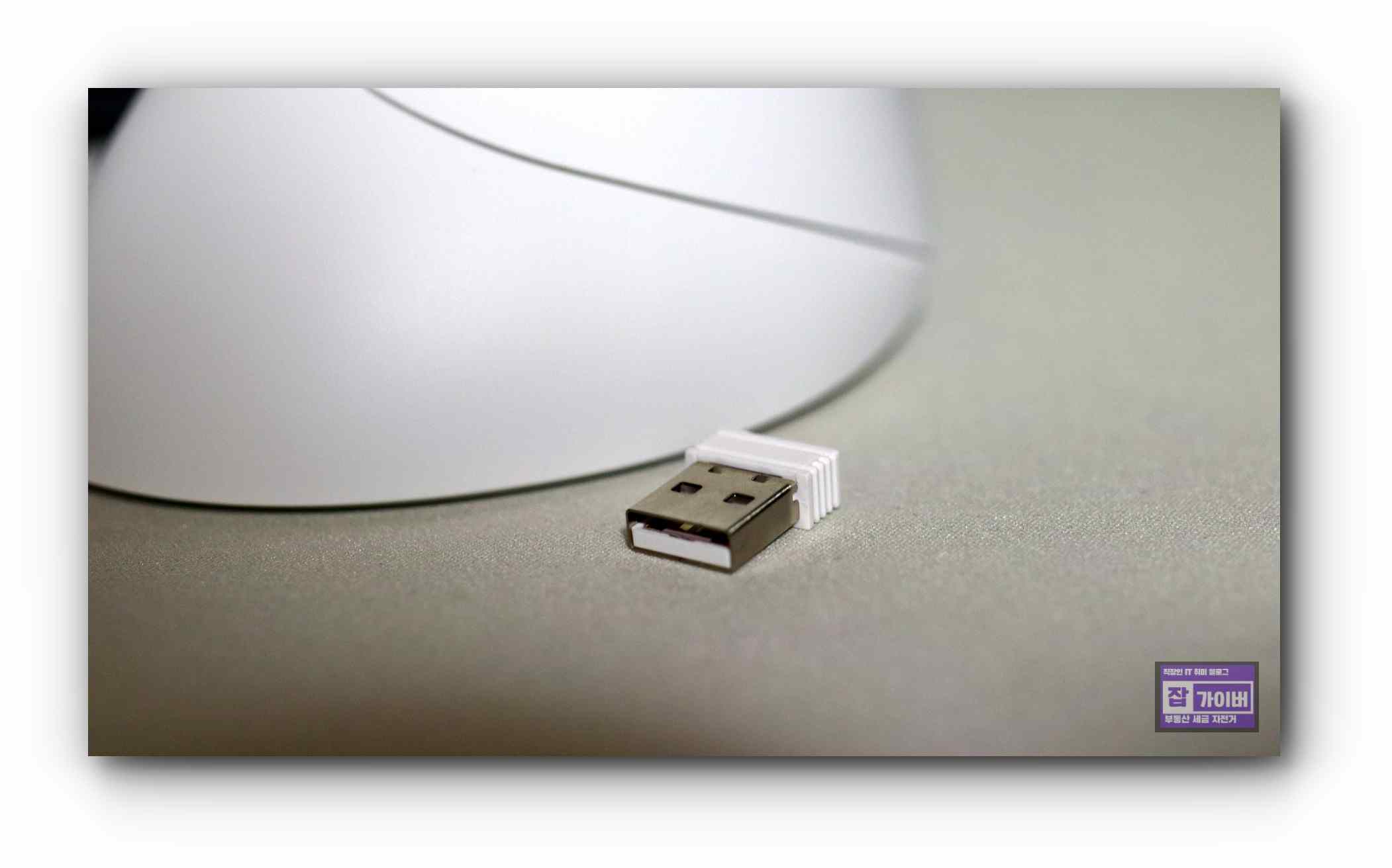 무선 사용을 위한 2.4Ghz 무선 리시버는 최대 10m까지 끊김 없이 사용 가능하며, 설치는 간편하게 USB 포트에 꽂아주면 자동으로 설정됩니다.