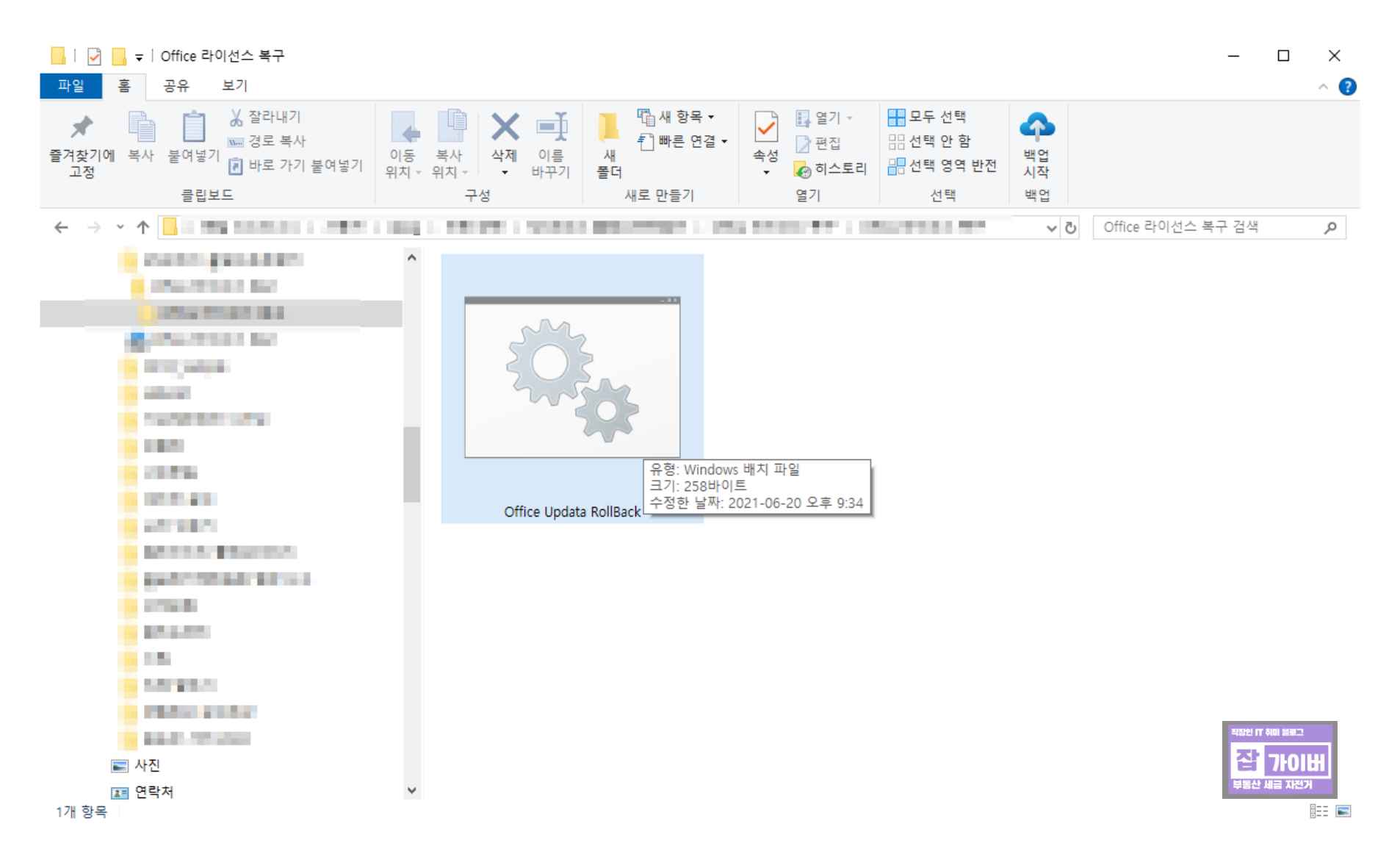 위에 첨부한 오피스 라이선스 복구 프로그램을 다운로드 받아 Office Updata RollBack.BAT 파일을 관리자권한으로 실행합니다. 그럼 현재 등록된 라이센스 문제가 자동으로 복원되어 정품인증이 다시 재설정됩니다.