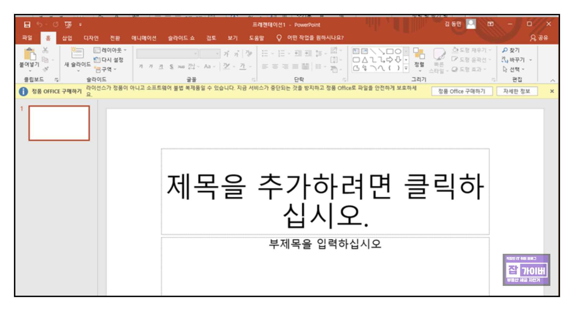 오피스에서 '정품이 아닙니다'라는 문구가 뜰 때 해결 방법은?