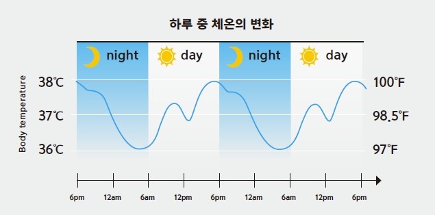 24시간 하루 중 신체의 체온변화