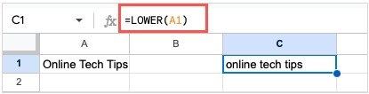 문자를 모두 소문자로 변경하려면 LOWER 함수와 다음 공식을 사용하세요.