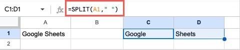어쩌면 위와 반대되는 작업을 수행하여 텍스트를 결합하는 대신 별도의 텍스트를 만들고 싶을 수도 있습니다. 이를 위해 SPLIT 기능을 사용할 수 있습니다.