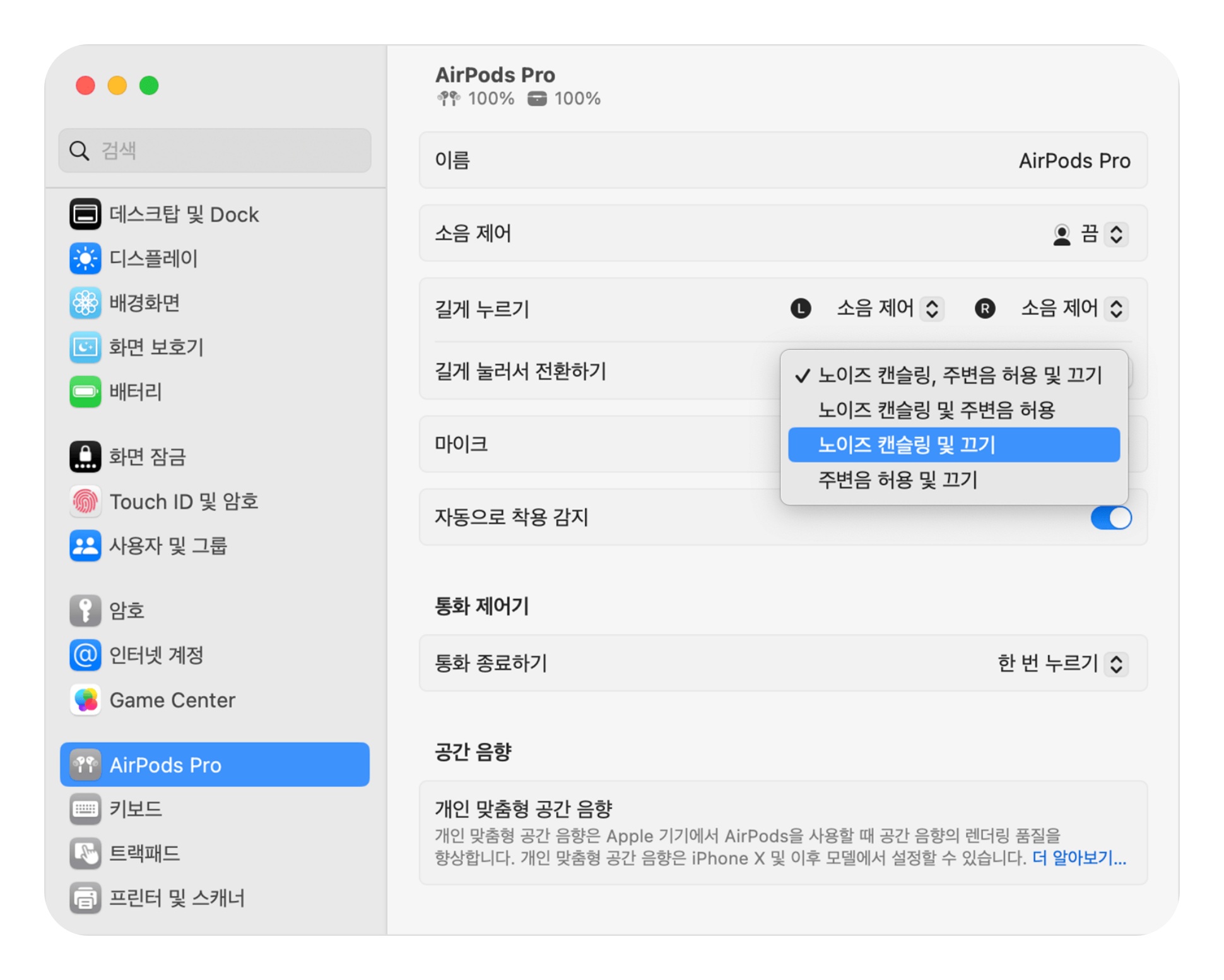 에어팟 노이즈 캔슬링 끄기