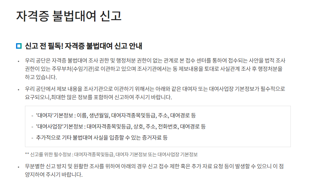 자격증 대여 시세와 현황