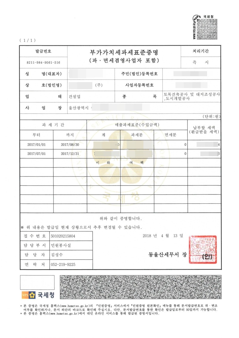 개인에게는 소득금액증명원이라는 유사한 서류가 있으며 부가가치세과세표준증명원은 대출을 받을 때나 은행이나 공공기관에 제출하는 자료로 사용됩니다. 특히 사업자 대출을 받을 때 이 서류를 통해 회사의 상환 능력이나 매출, 매입 상황을 확인하게 됩니다.