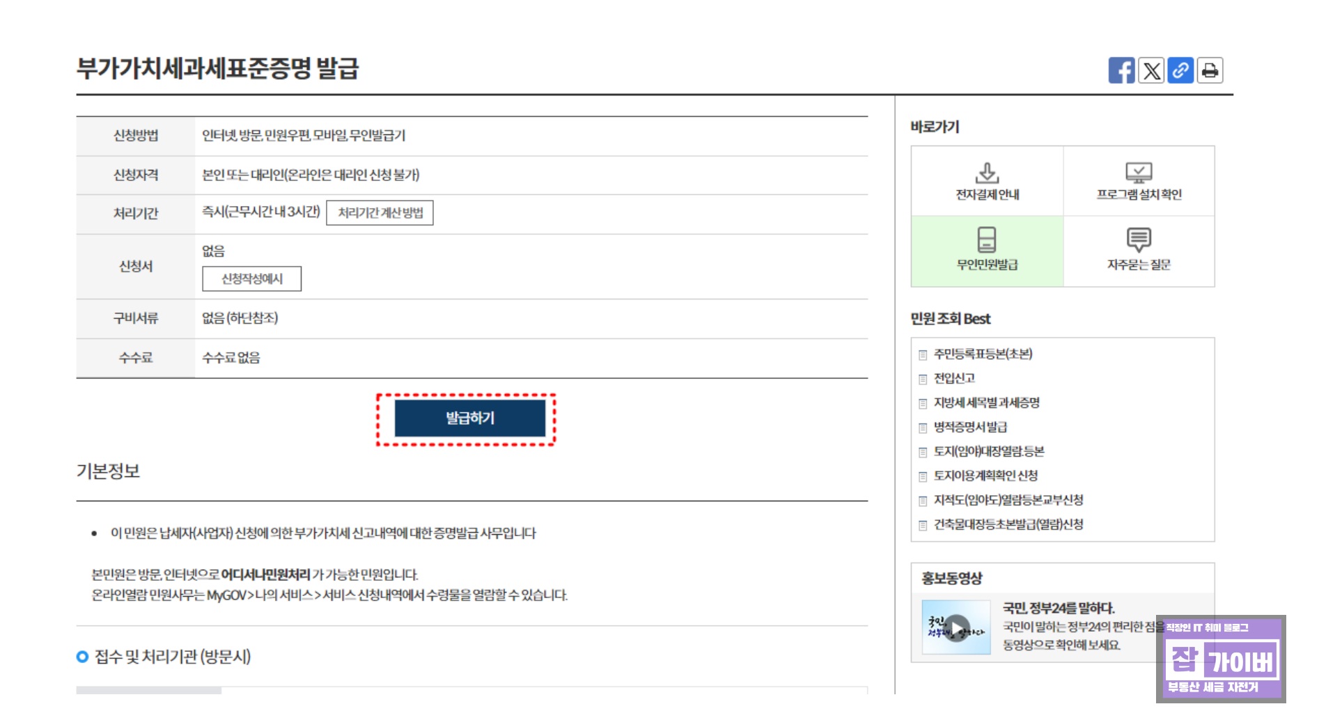 부가가치세 과세표준증명원 인터넷 발급신청 방법