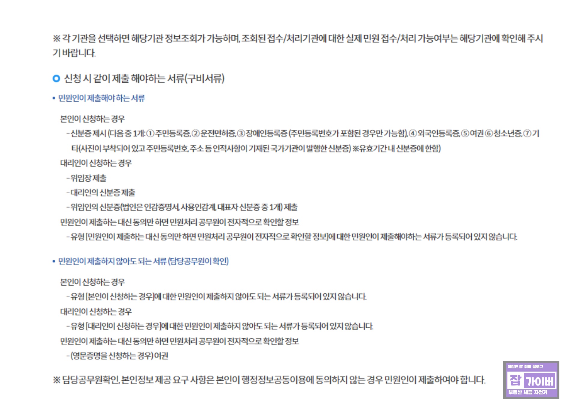 - 유형 [대리인이 신청하는 경우]에 대한 민원인이 제출하지 않아도 되는 서류가 등록되어 있지 않습니다.