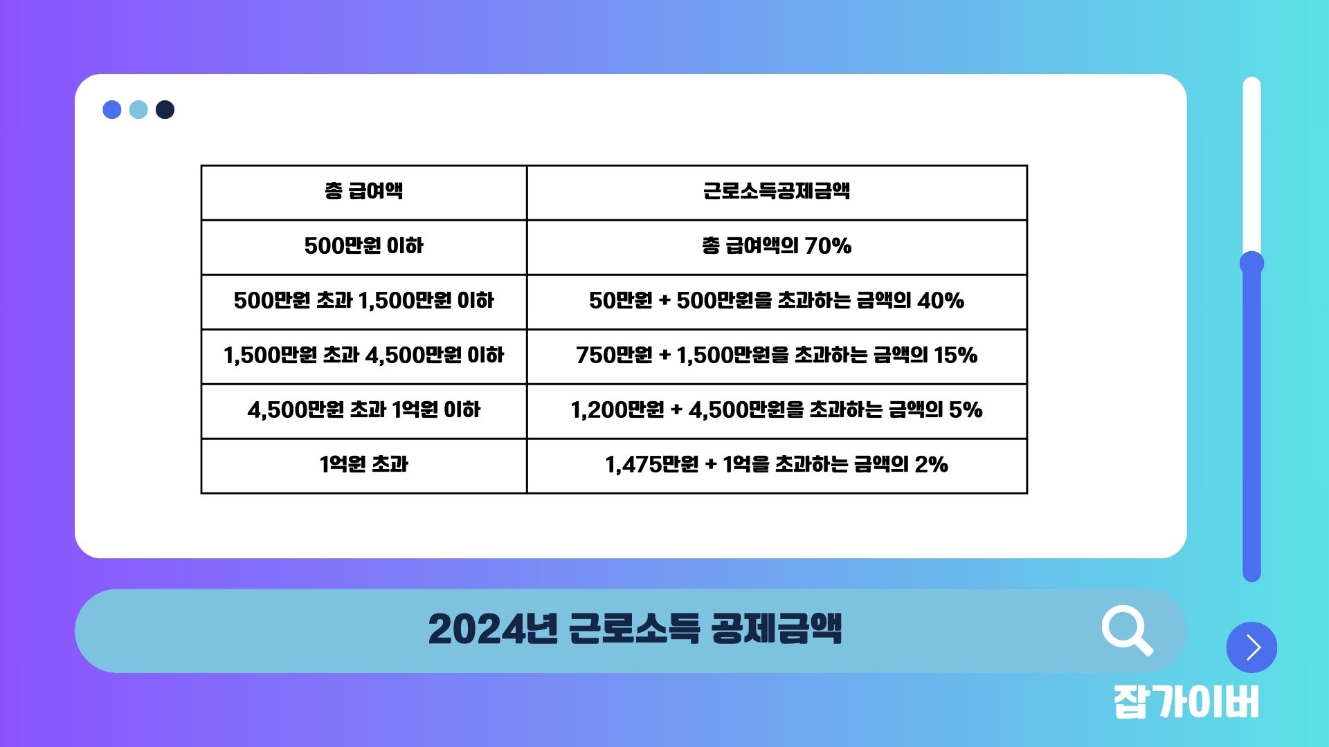 | 총급여액 | 연봉에서 비과세 소득을 제외한 금액 |