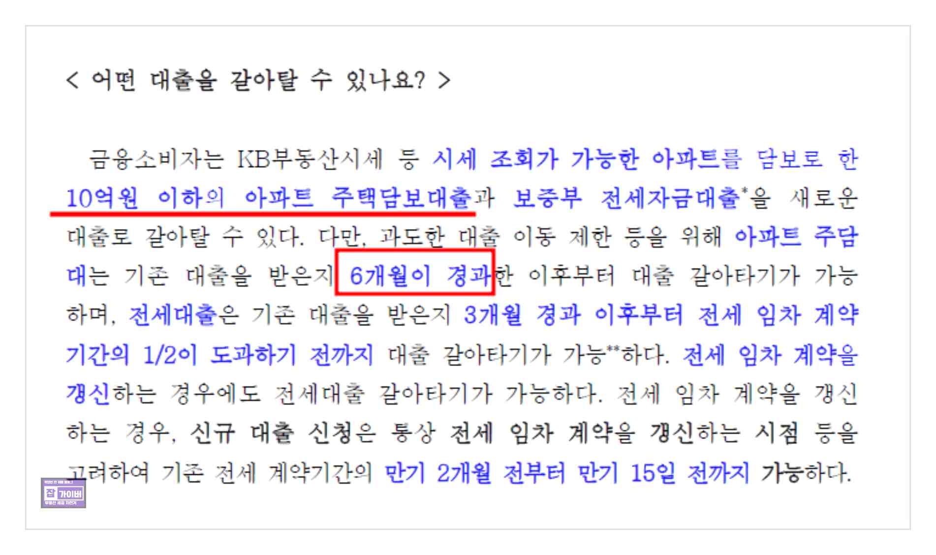 - 둘째, 주담대를 받은 후 6개월 이상이 경과해야 합니다. 이는 단기간에 반복적인 대환을 방지하고, 대출 시장의 안정성을 유도하기 위함입니다.