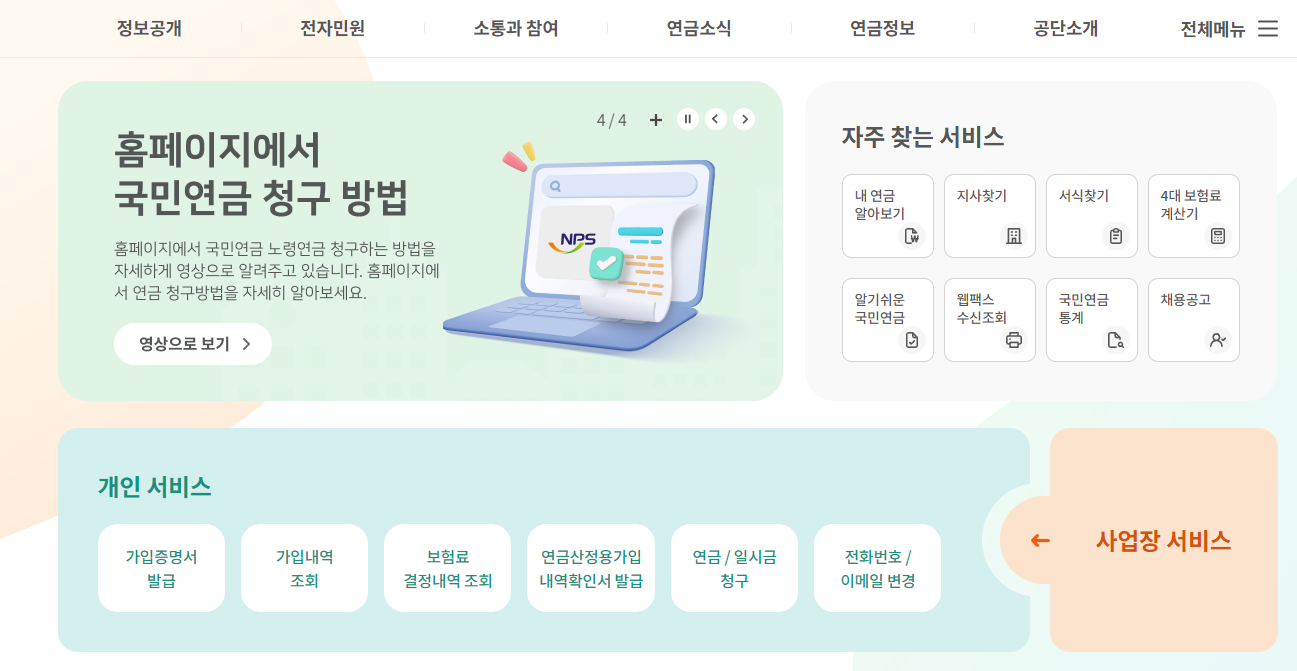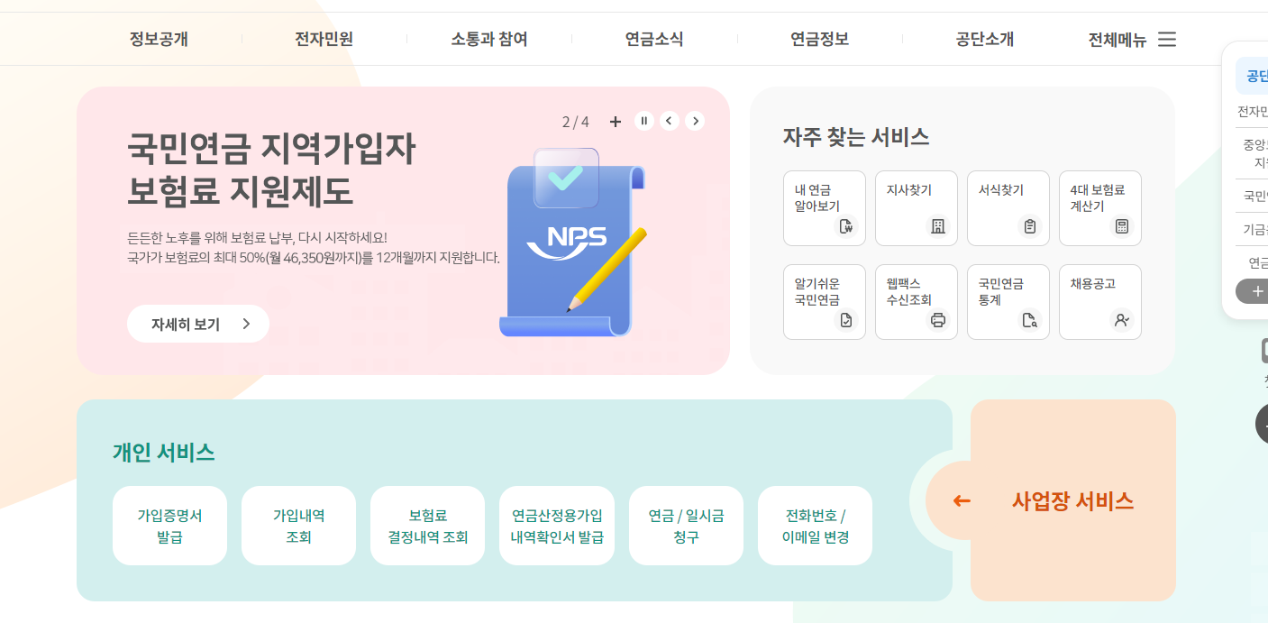- 개인의 납부 내역과 예상 연금액을 확인할 수 있습니다.