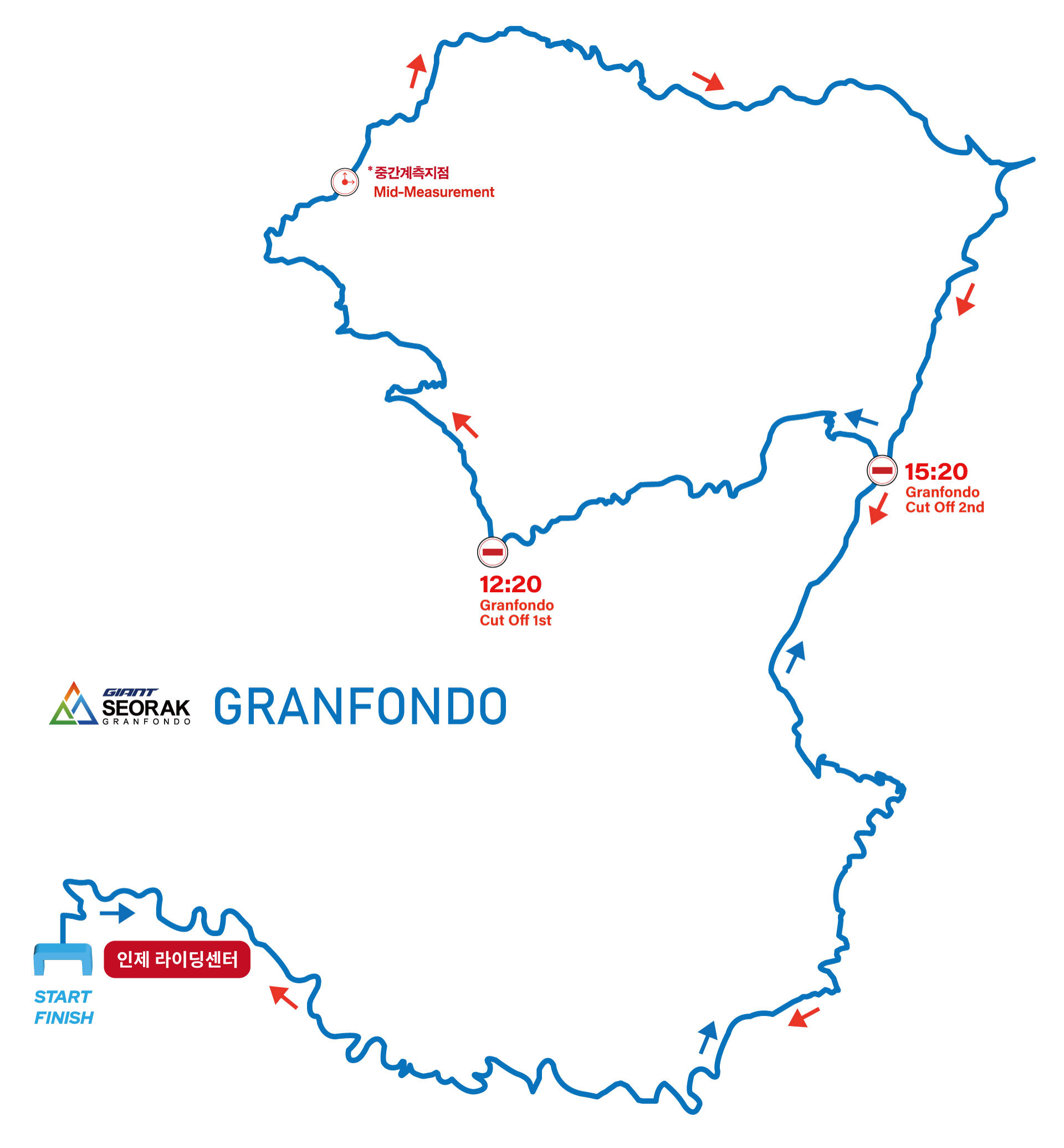 완주 제한시간: 그란폰도 부문은 Net Time 기준으로 12시간, 메디오폰도 부문은 Net Time 기준으로 7시간입니다.