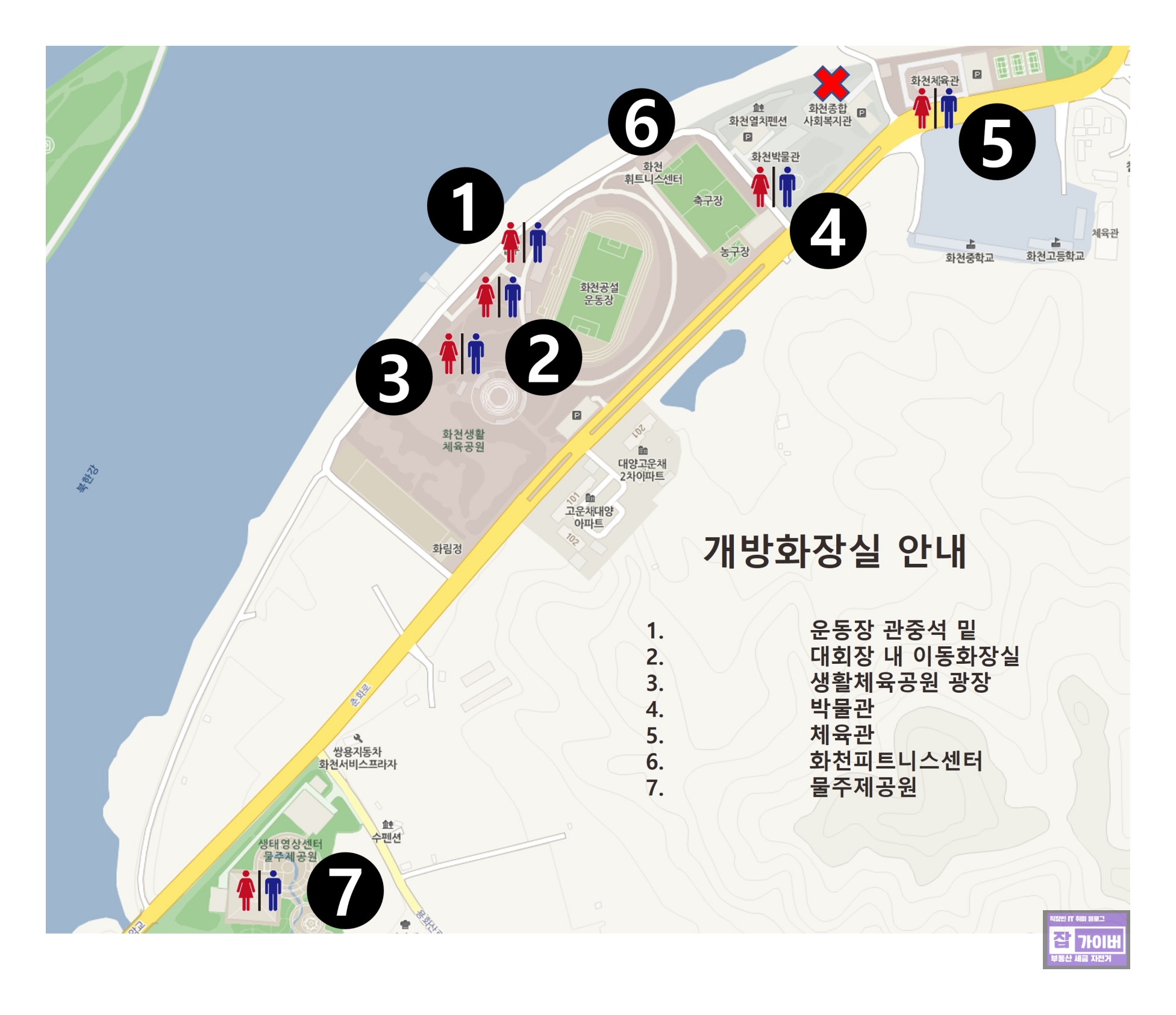 시작점: 화천공설운동장 - 대회 시작점이자, 참가자들이 모이는 곳입니다.