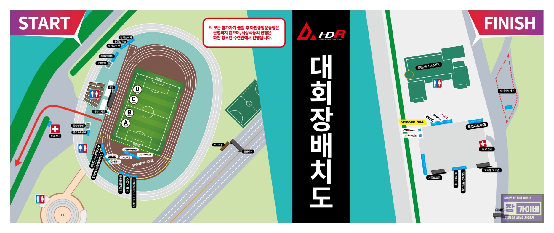 시작점: 화천공설운동장 - 대회 시작점이자, 참가자들이 모이는 곳입니다.