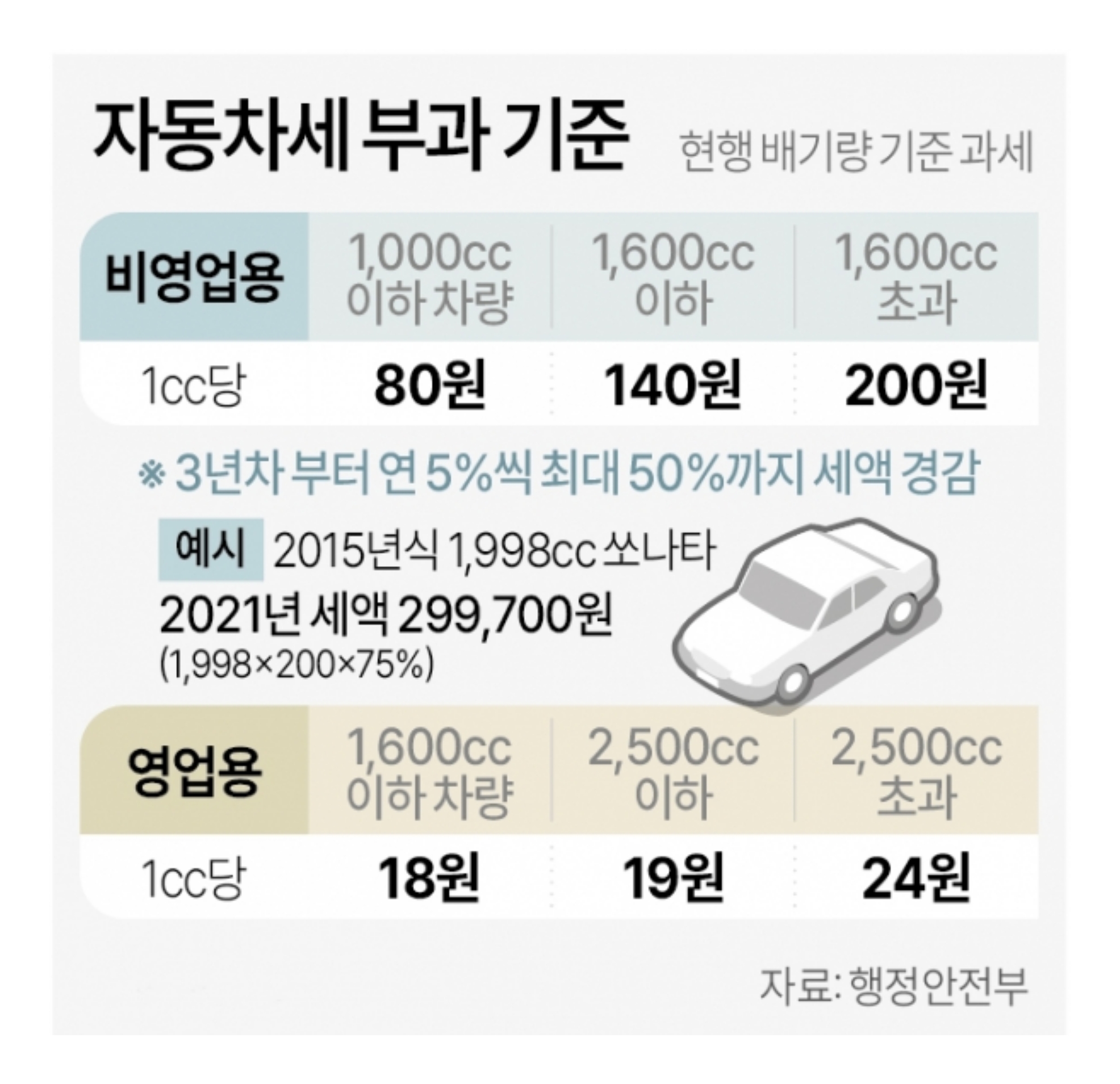 2025년에는 자동차세를 배기량에 따라 계산하여 납부하게 되는데, cc당 200원이 붙습니다