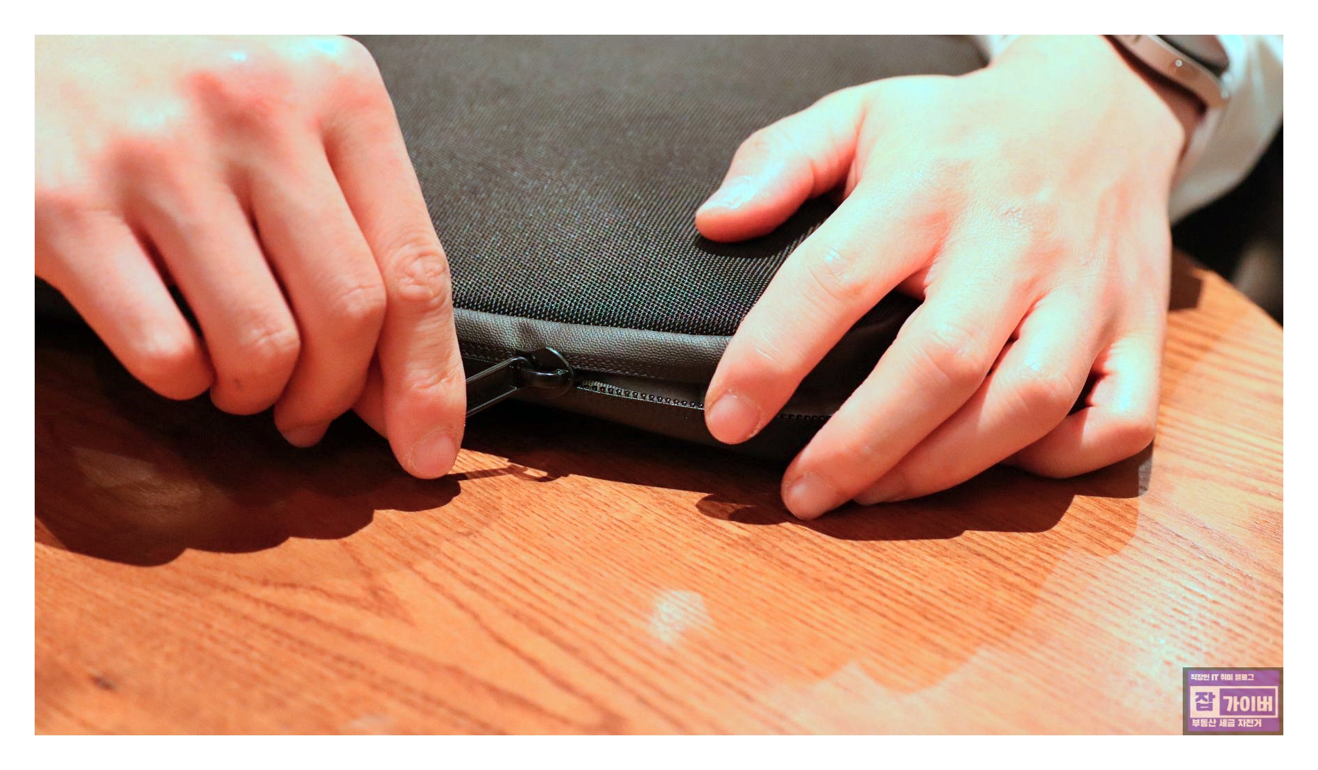 엑스디디자인은 이미 백팩을 통해 그 품질과 디자인에 만족감을 느꼈던 터라, 이번에는 노트북 파우치를 선택했습니다. 다양한 사이즈가 마련되어 있어, 13인치뿐만 아니라 14인치, 15인치, 16인치용 노트북에도 적합한 제품을 제공하죠. 특별히 저는 MEDIUM 사이즈의 파우치를 선택하여 맥북과 아이패드 프로를 함께 휴대하며 그 안전성과 편리성을 직접 경험해보았습니다.