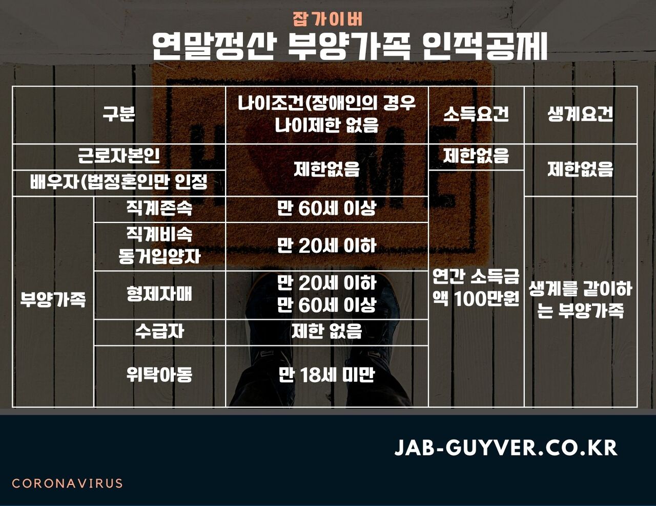 1. 부양가족공제 대상 - 직계존속 및 조건