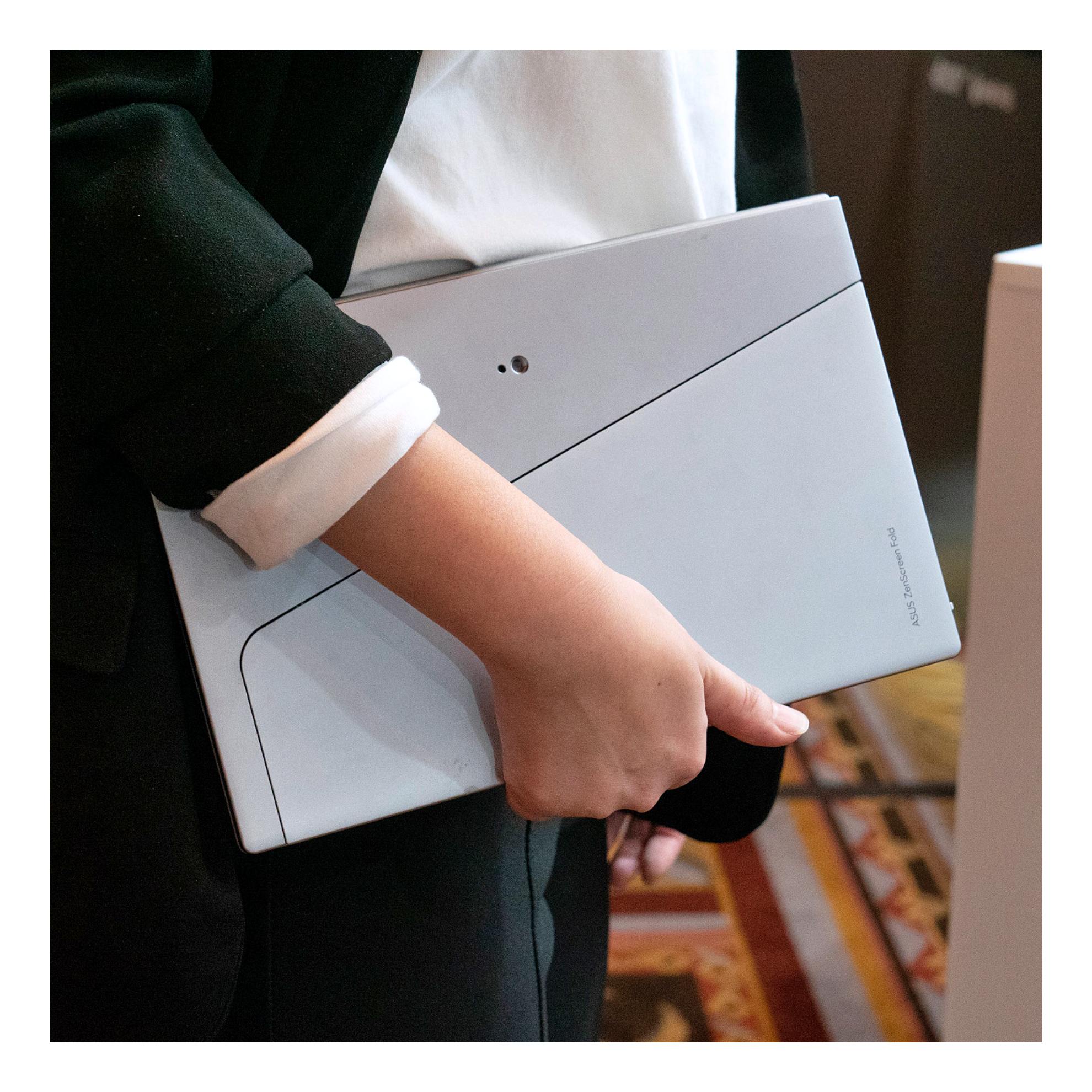 아수스 젠스크린 ZenScreen Fold OLED MQ17QH는 폴더블 모니터의 휴대성을 정말로 증명하기 위해 완전히 펼쳤을 때의 두께가 9.7mm로, 접었을 때는 12.5인치 휴대용 디스플레이와 유사한 형태로 노트북 가방에 손쉽게 넣을 수 있습니다.