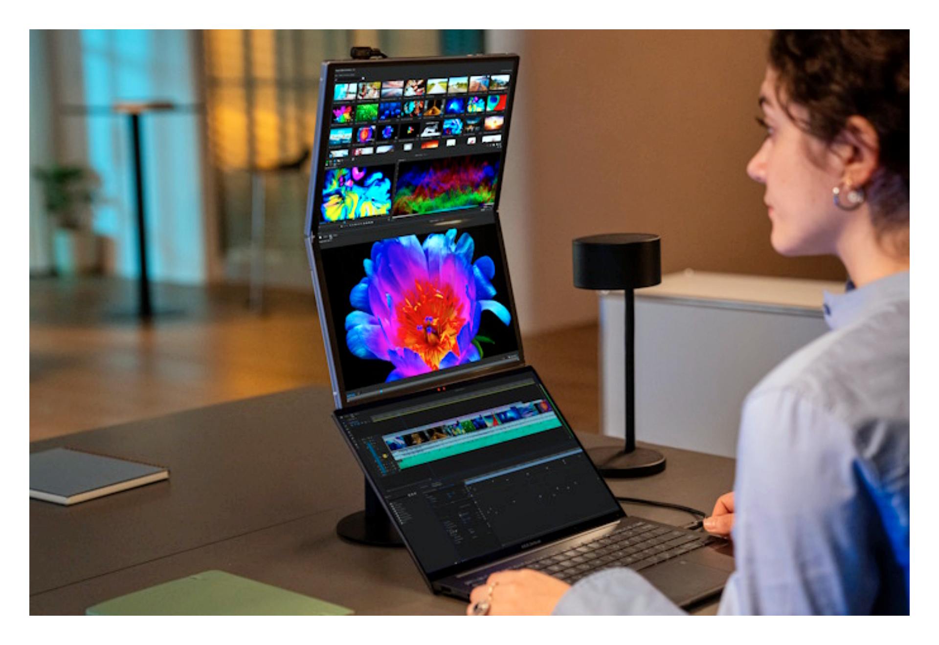 ASUS ZenScreen Fold는 DCI-P3 100% 색역, HDR True Black을 지원하기 때문에 일반 디스플레이보다 훨씬 넓은 색 재현 범위를 가집니다.