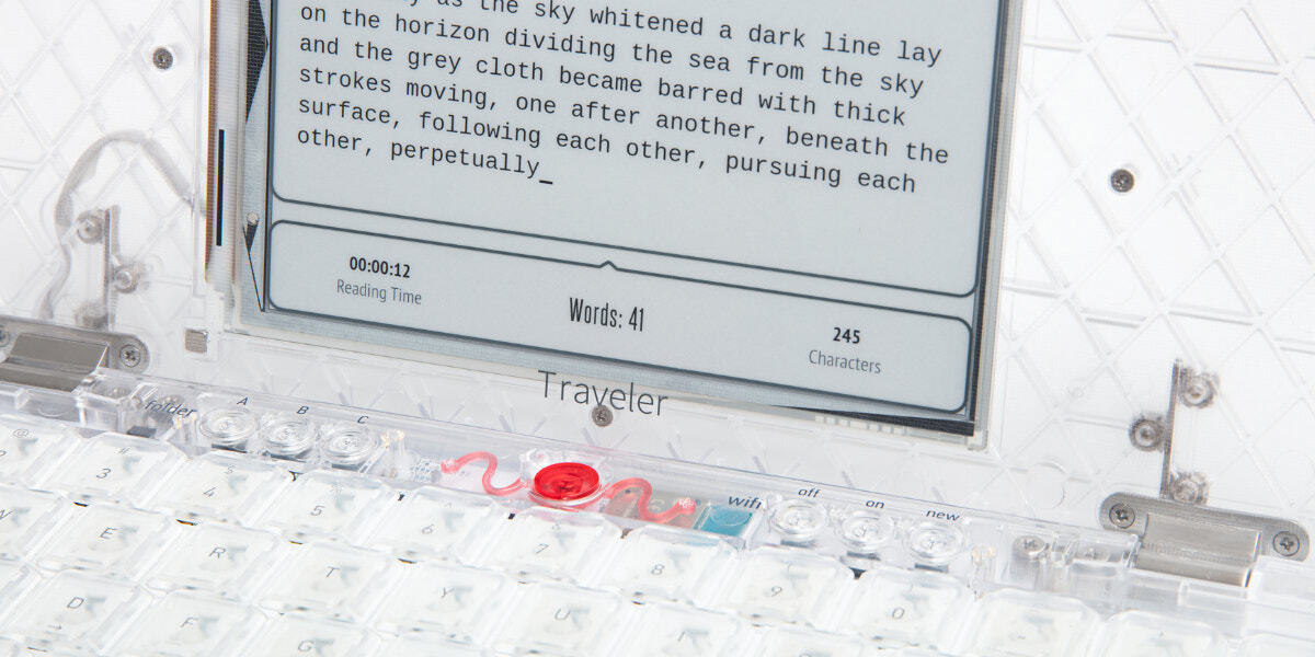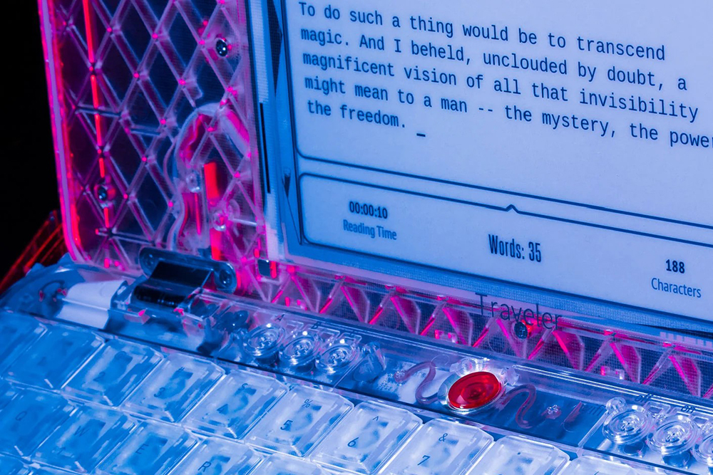 프리라이트 트래블러 고스트 에디션은 트래블러 시리즈의 특별한 버전으로 투명한 재질을 사용한 디자인이 돋보입니다. 기본적으로는 트래블러와 유사하지만 화면 쪽 재질이 변경되었으며, 한정판으로 제작되어 가격은 일부 상승했습니다. 그러나 내부 구성은 동일하며, 풀사이즈 키보드와 4.75인치 E Ink 디스플레이를 유지하고 있습니다.