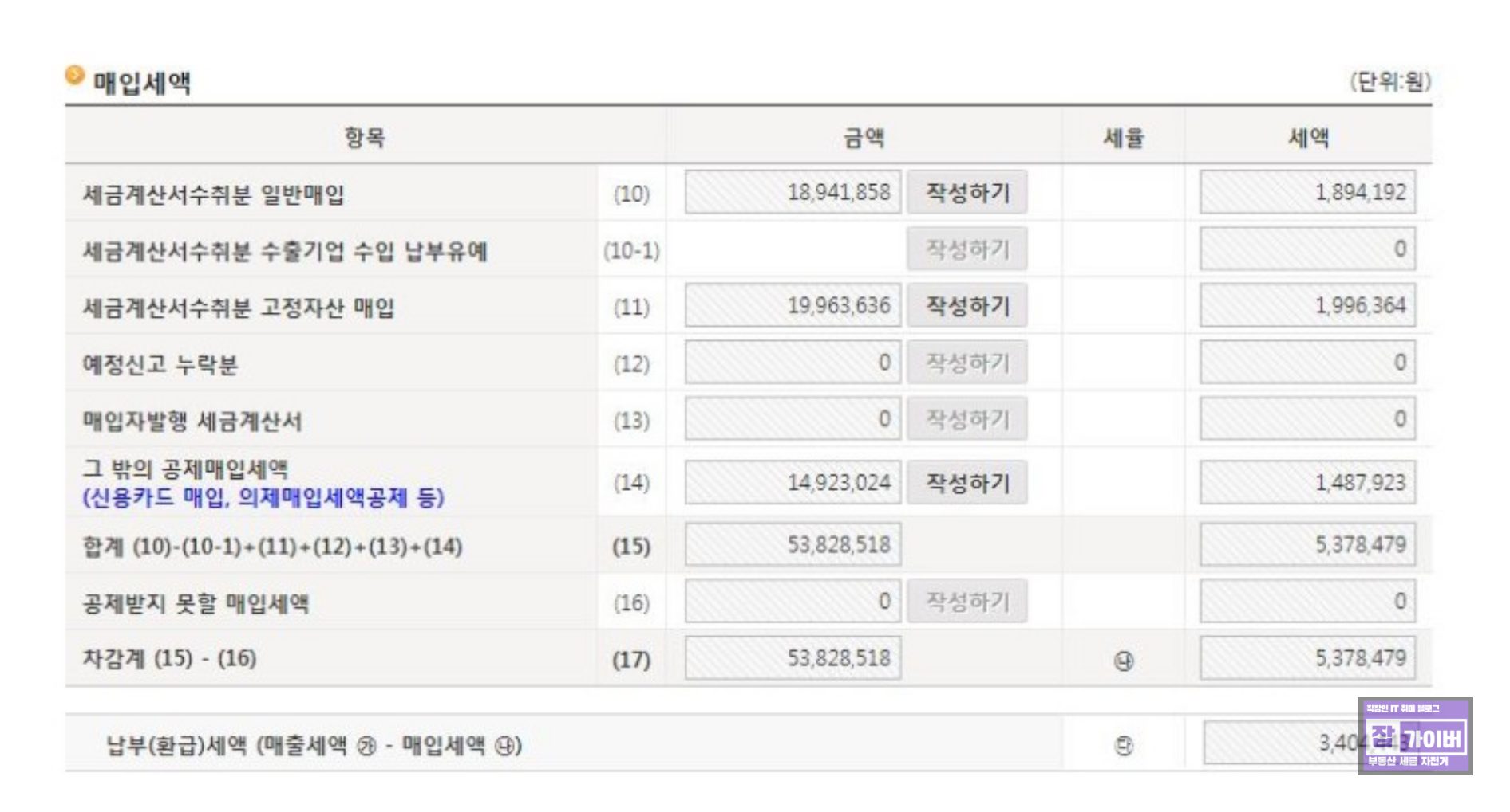 고정자산 매각과 부가가치세 과세표준 명세 작성방법