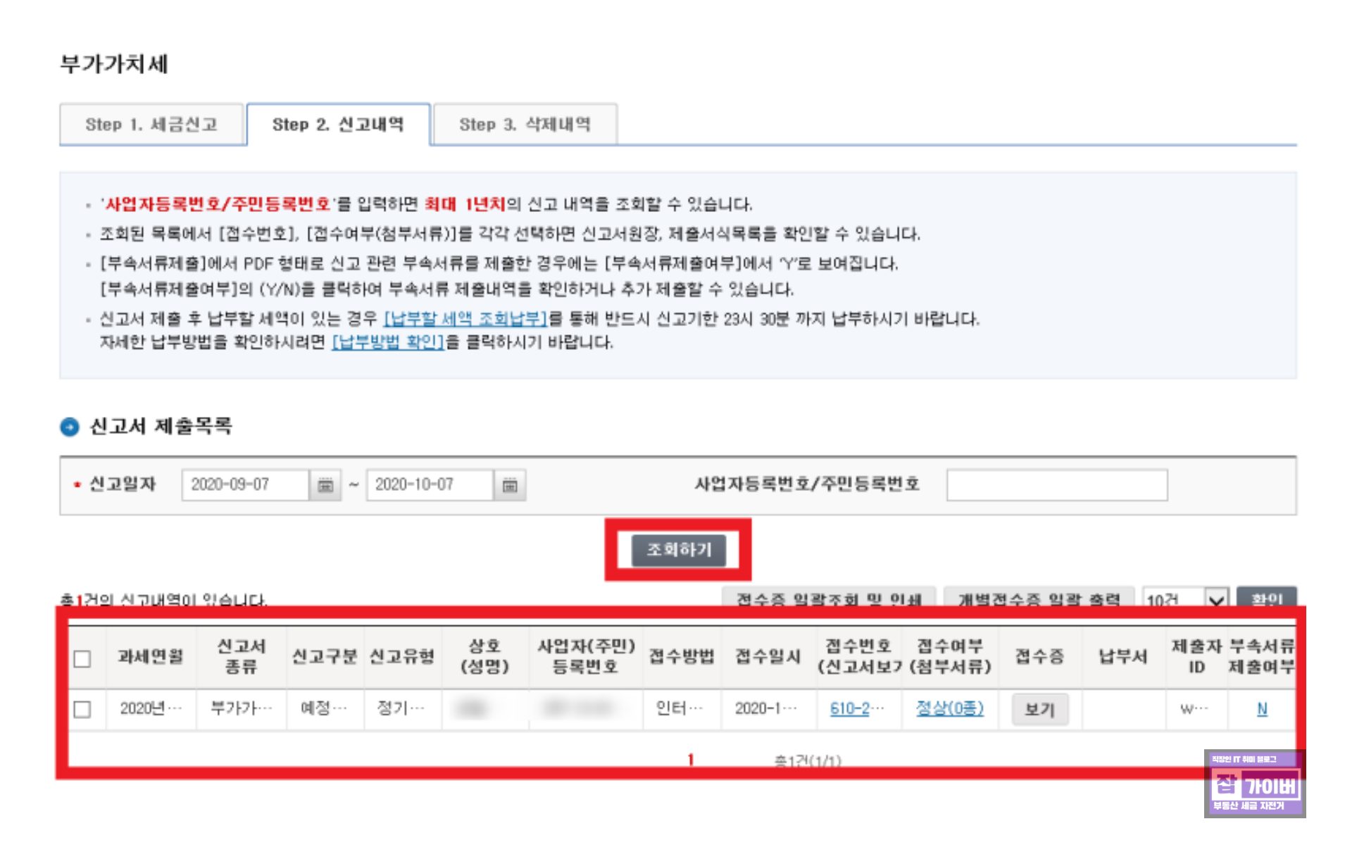 Q6: 부가세 무실적 신고 후 확인 방법은?