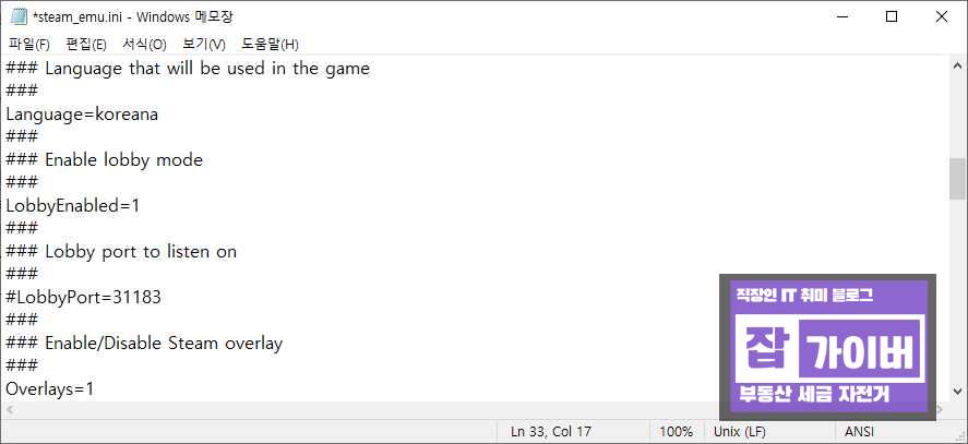 참고로 저장 시 기존파일을 steam.emu.ini 파일로 교체해야 하느데 저장이 간혹 권한부족으로 다른이름으로 저장 시 저장이 안되는 경우가 있는데 이 경우 해당파일을 바탕화면이나 d드라이브등에 저장한 다음 메모장을 종료 후 해당파일을 잘라내기로 붙여넣기해서 교체합니다.