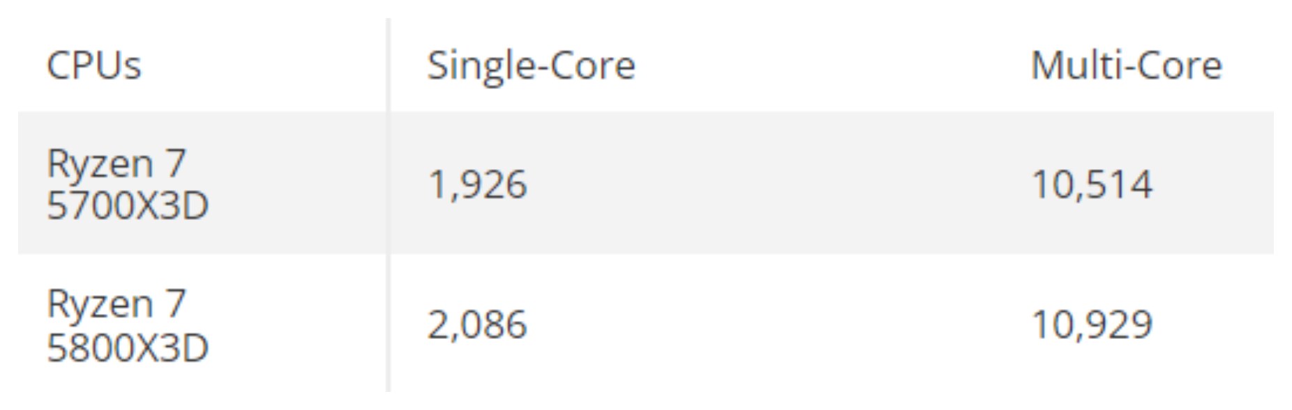 긱벤치 6에서 나온 벤치마크 결과에 따르면, 라이젠 7 5700X3D는 Ryzen 7 5800X3D에 근접한 퍼포먼스를 보여주고 있습니다. 이는 기존에 출시된 5800X3D에 대응하는 벤치마크 성능을 가지고 있어, 사용자들에게 기대 이상의 성능을 제공할 것으로 예상됩니다.